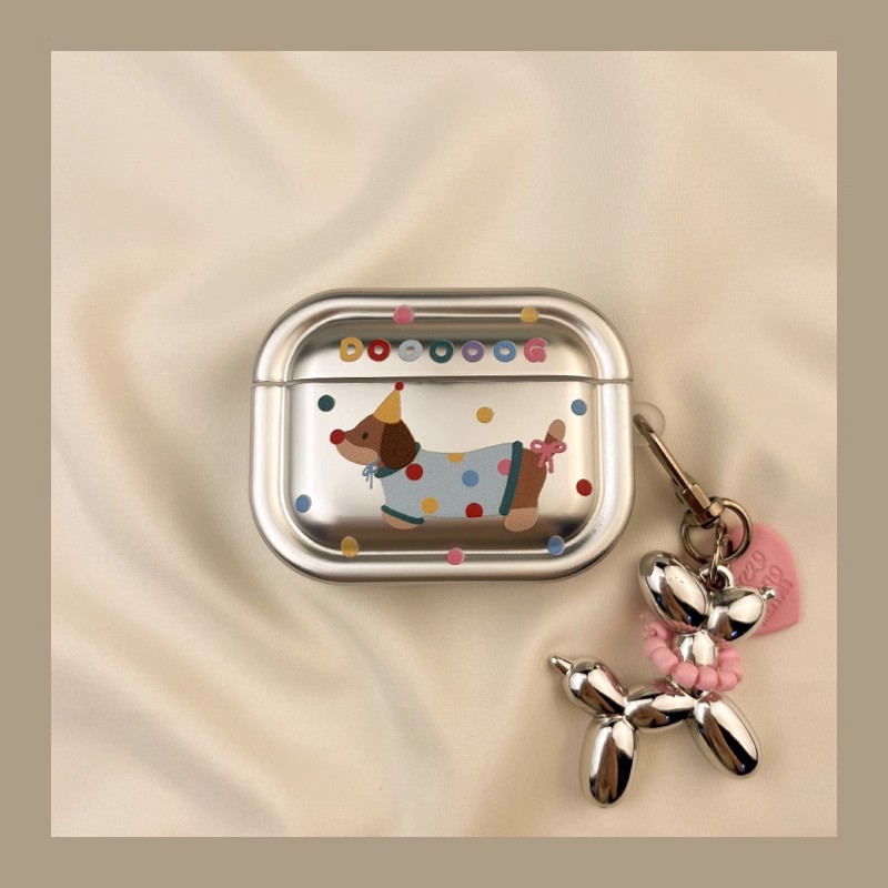 ins电镀彩色波点腊肠狗适用苹果airpodspro保护套airpod3耳机软壳