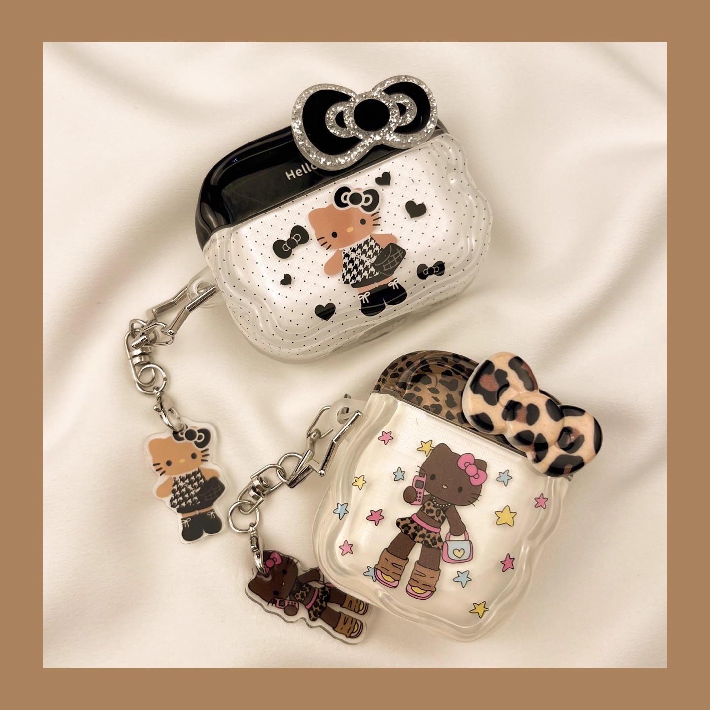 ins甜酷豹纹黑皮KT猫airpodspro2保护套airpod4适用于苹果耳机壳