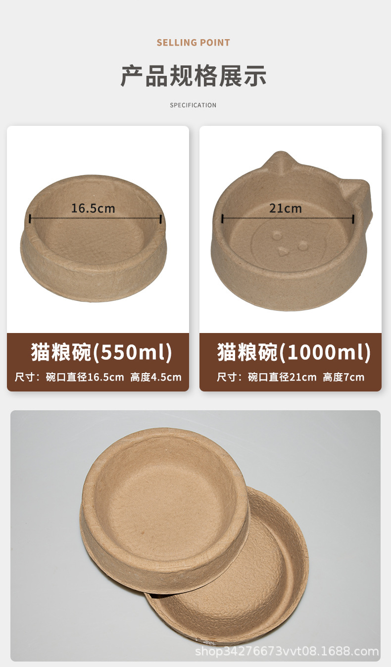 一次性猫碗猫咪饭碗水碗猫食盆户外便携纸浆环保可降解宠物粮碗