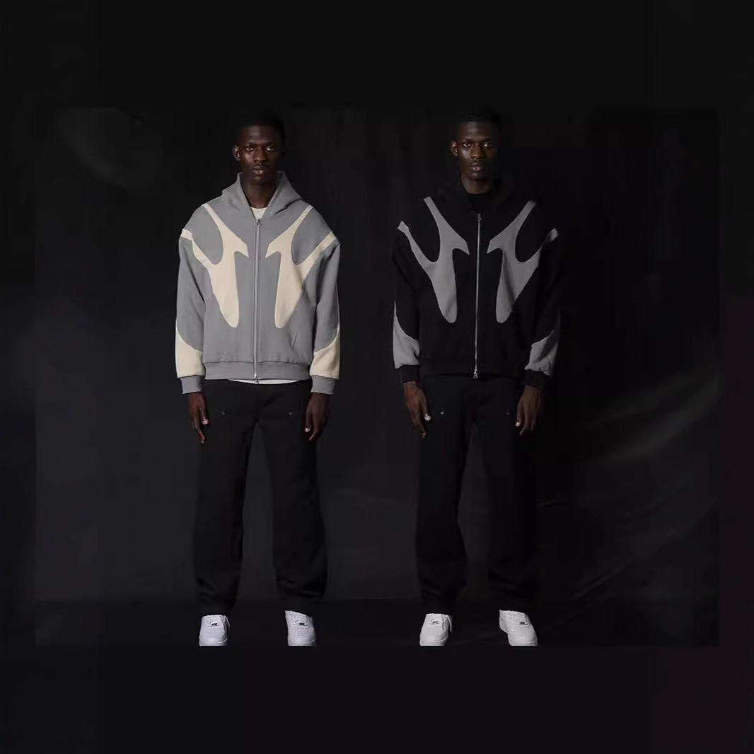 外贸跨境拉链连帽2d印花街潮潮流卫衣男女新款宽松复古开衫卫衣