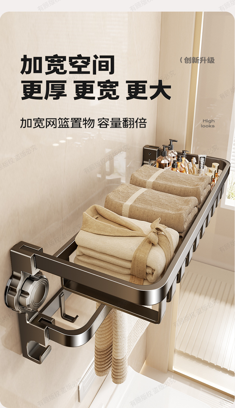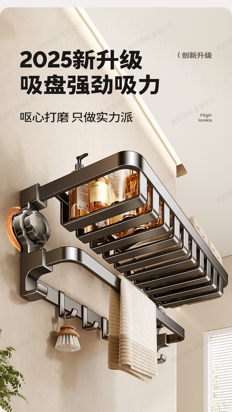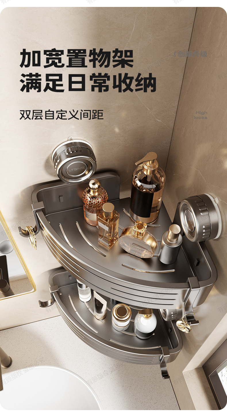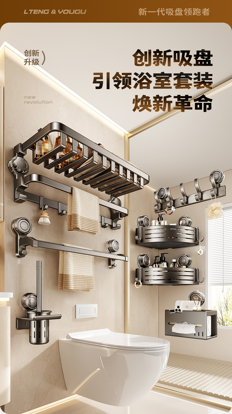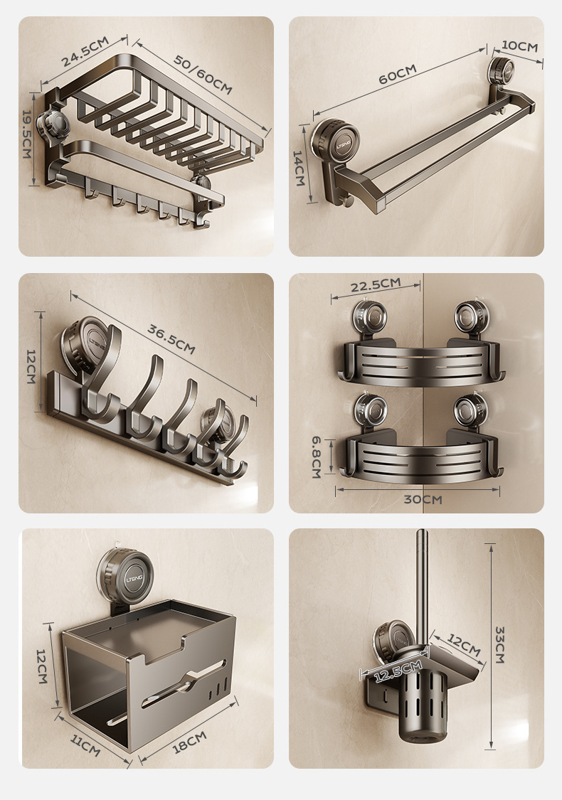 顧吸盤タオル棚トイレ無打孔銃灰浴室双棒タオル棒収納棚壁掛け