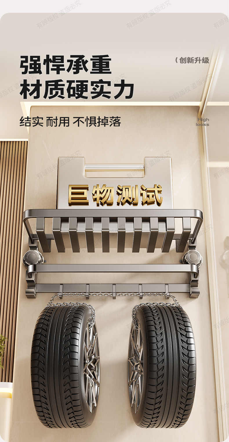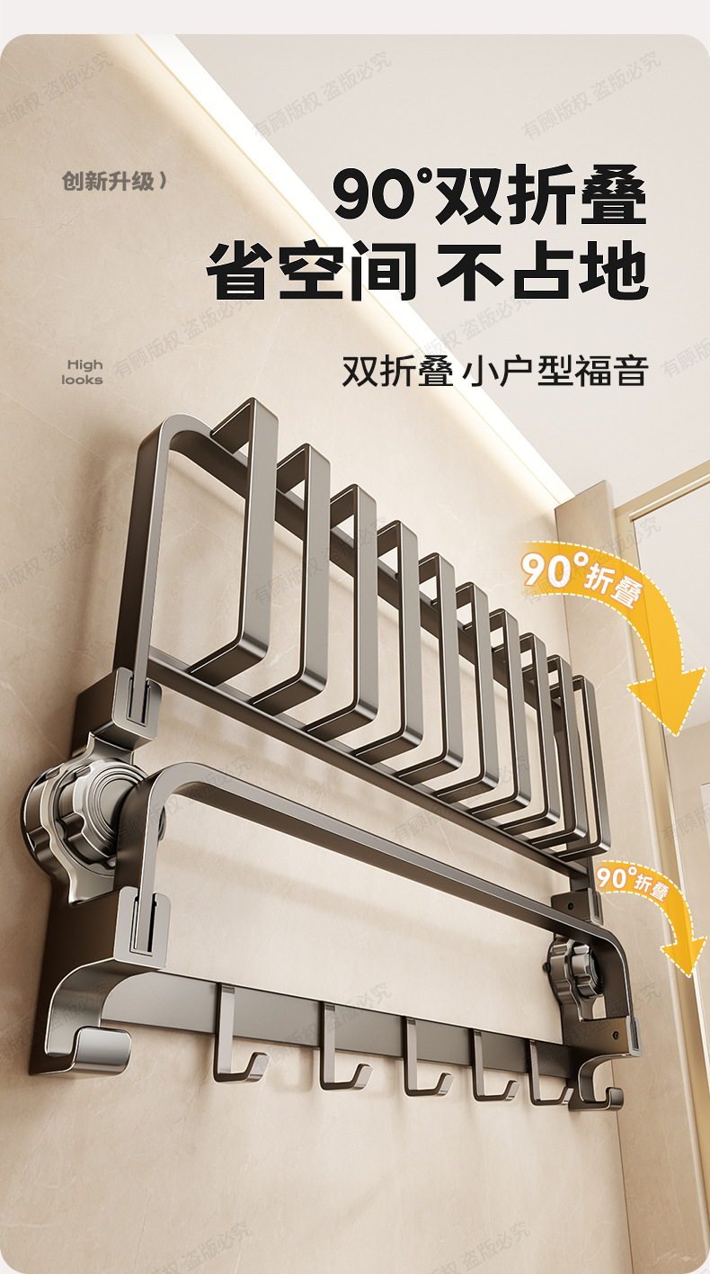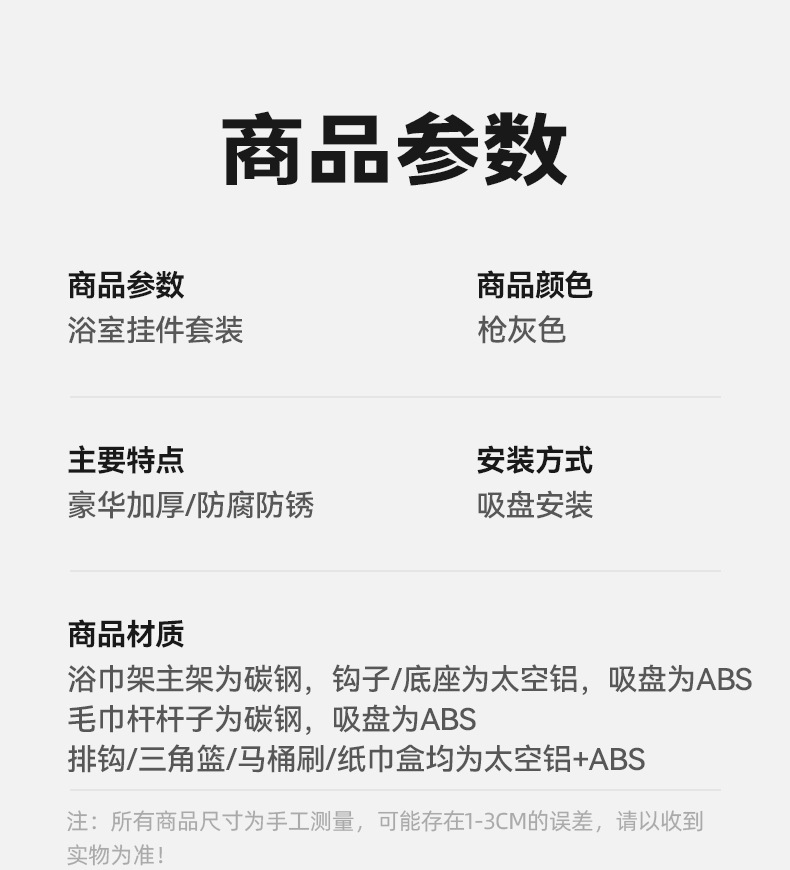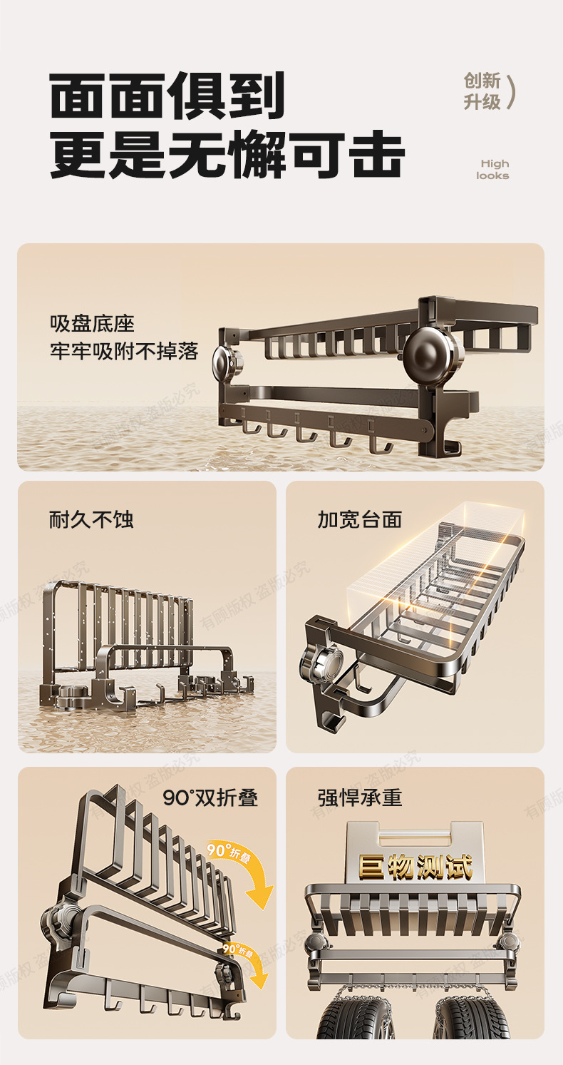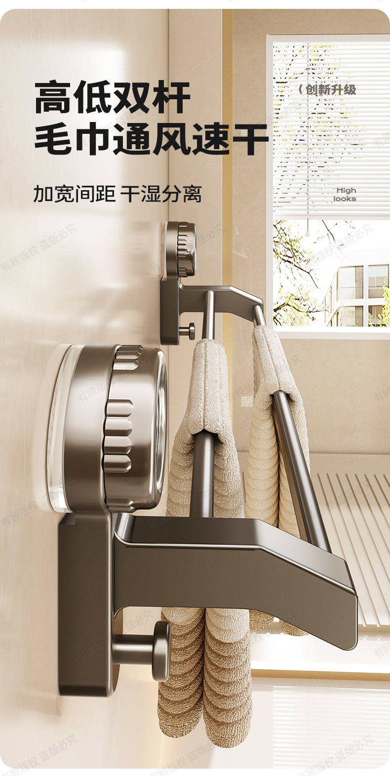 顧吸盤タオル棚トイレ無打孔銃灰浴室双棒タオル棒収納棚壁掛け