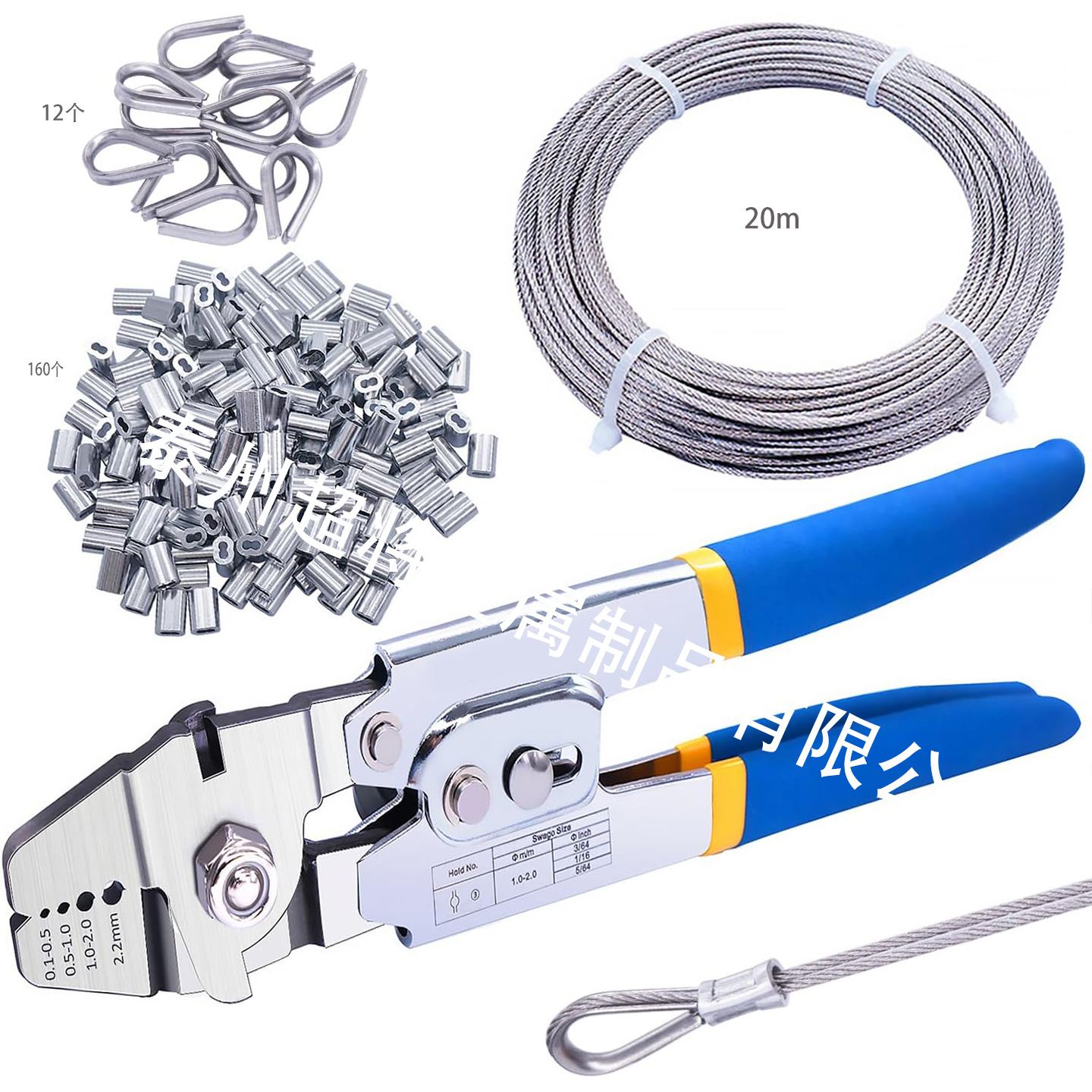 钢丝绳压接工具套件 1.5mm不锈钢钢丝绳线绳顶针 线压接工具套件