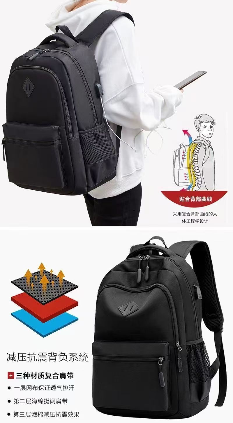 新しい中学生、高校生、男子ランドセル、大学生、大容量、軽量、メンズ出張無地バックパック