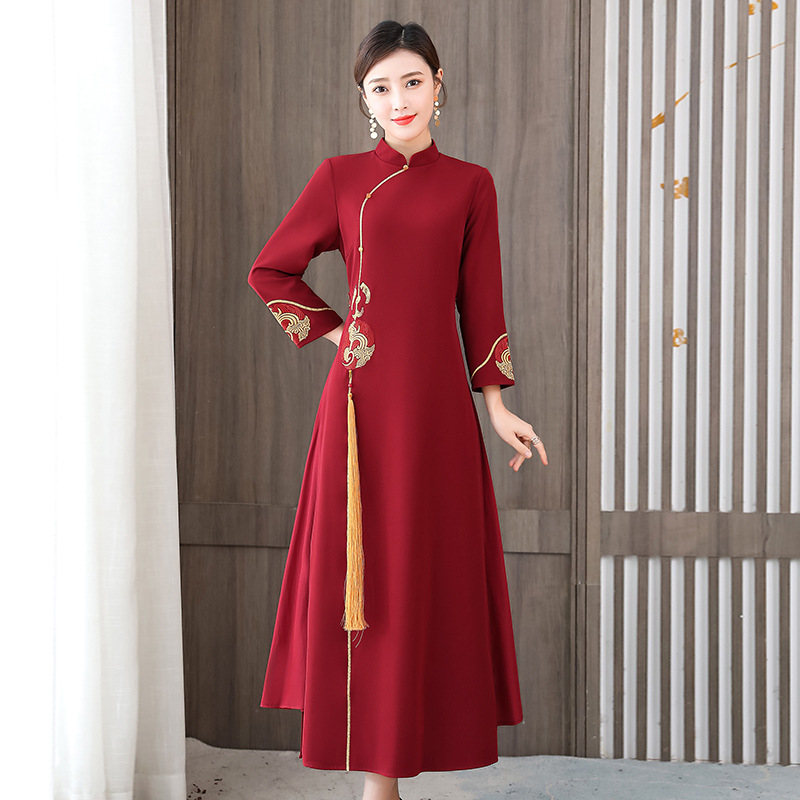 Xxnz6593新中国式優雅喜姑結婚披露宴装チャイナドレス2025新型気質母ワンピース