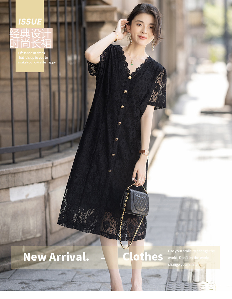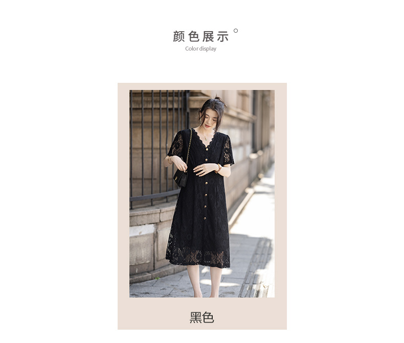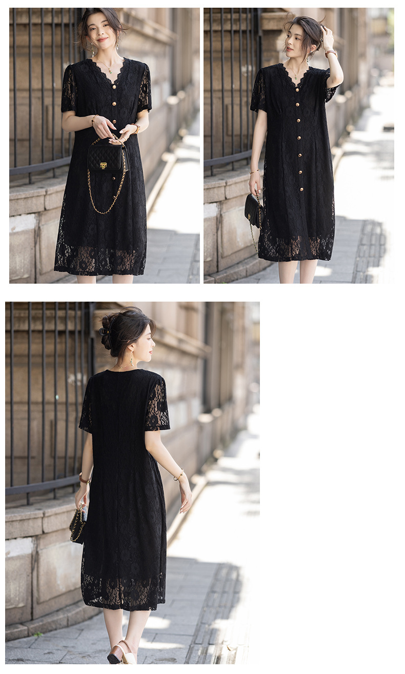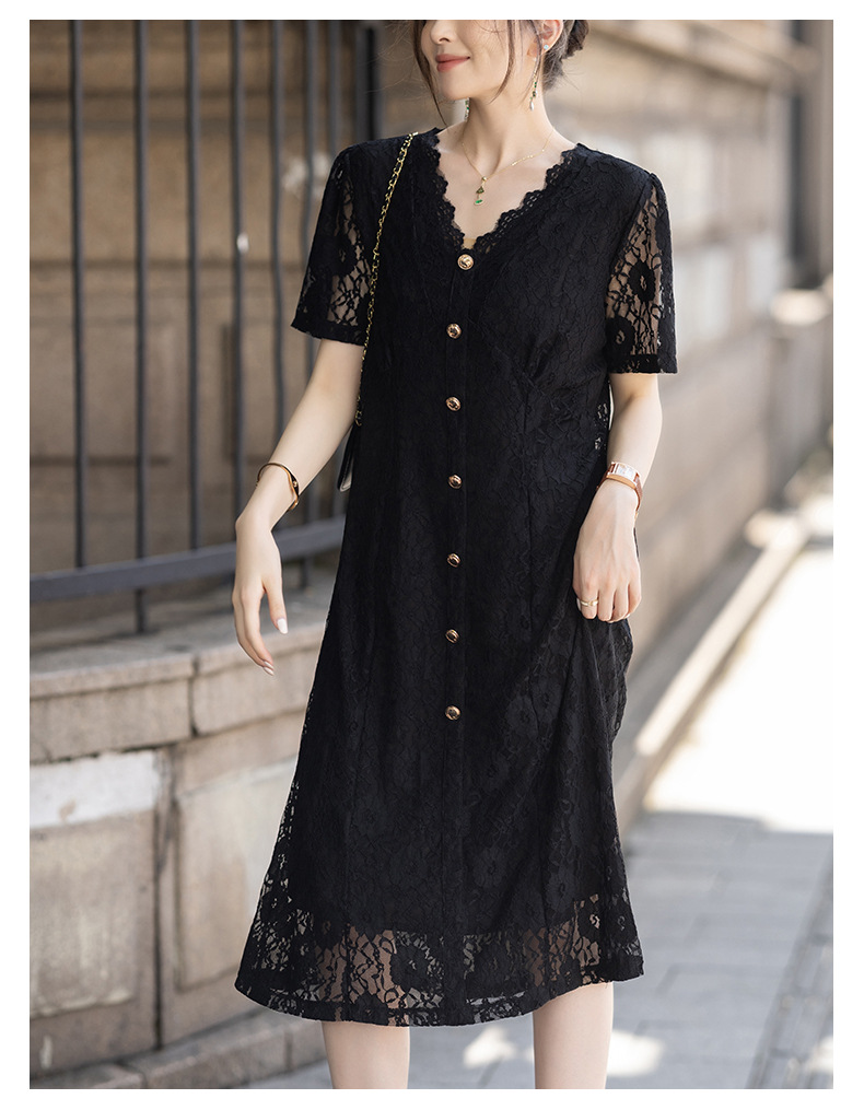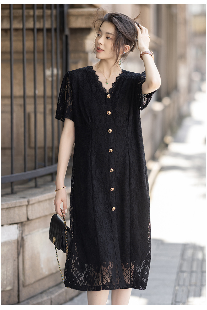 msdm572 フレンチヘップバーンスタイル V ネックレースドレス女性の 2025 夏のファッションエレガントな気質ミドル丈スカート