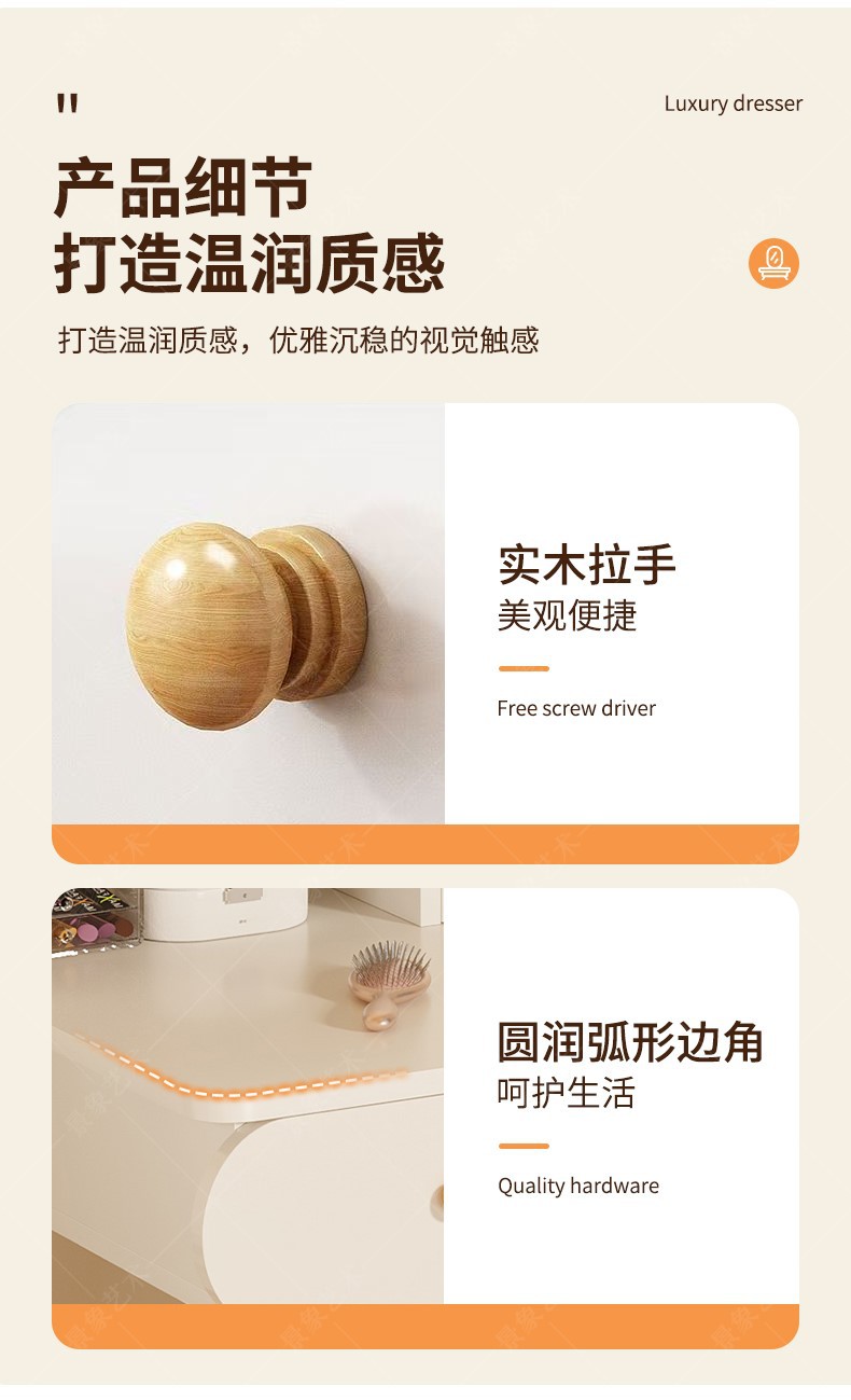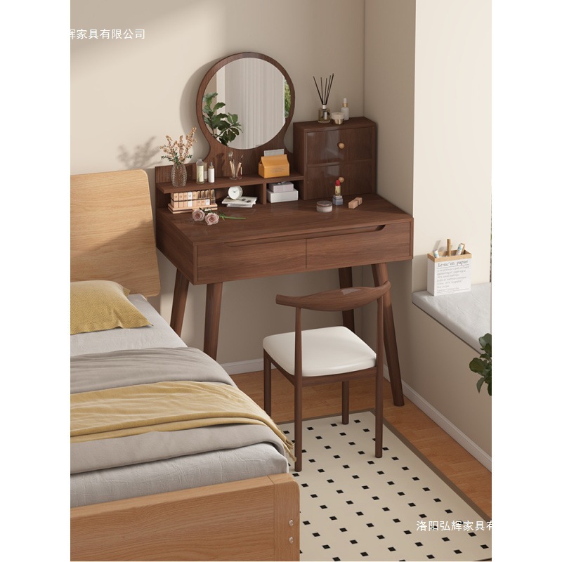 实木色梳妆台收纳柜化妆台现代简约卧室北欧梳妆桌书桌化妆桌一体