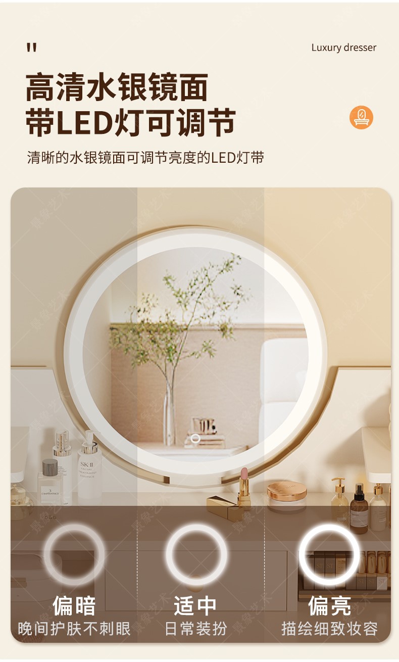 颜色 实木生态款单层暖白80CM+LED灯,实木生态款双层暖白100CM+LED灯,【组合装】实木生态款单层暖白80CM带灯+实木生态化妆凳,【组合装】生态款双层暖白100CM带灯+实木生态化妆凳