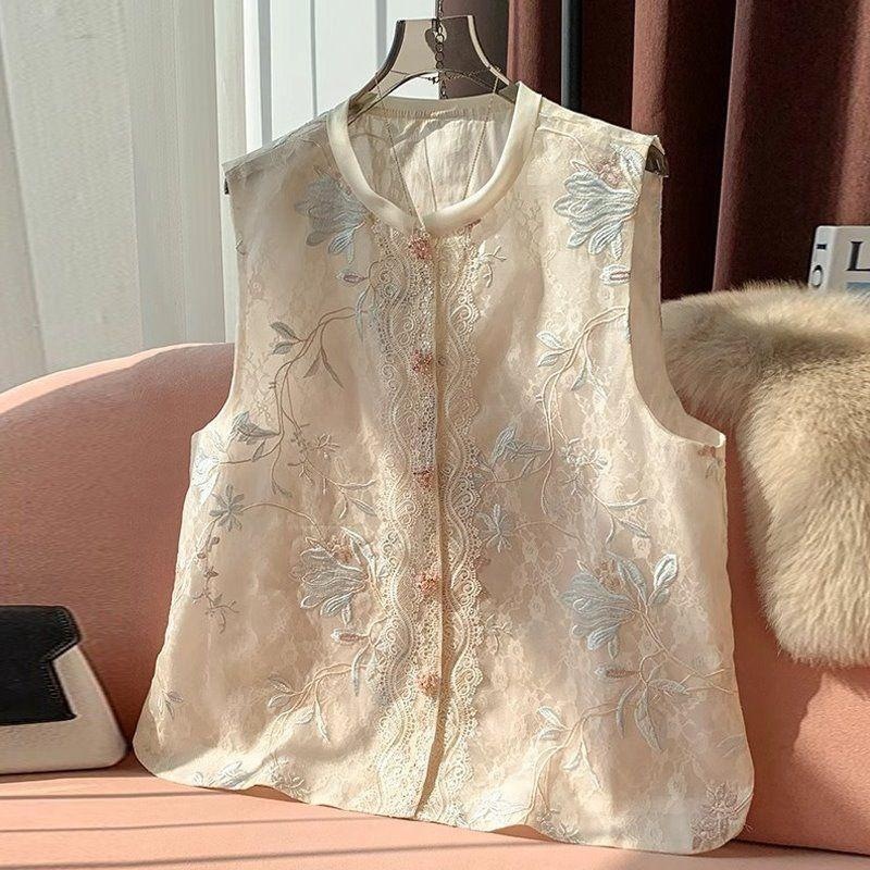 2025 新しいファッション中国風の新しい中国風のベストベスト重工業レース刺繍ベストベストウエスタンスタイルトップ