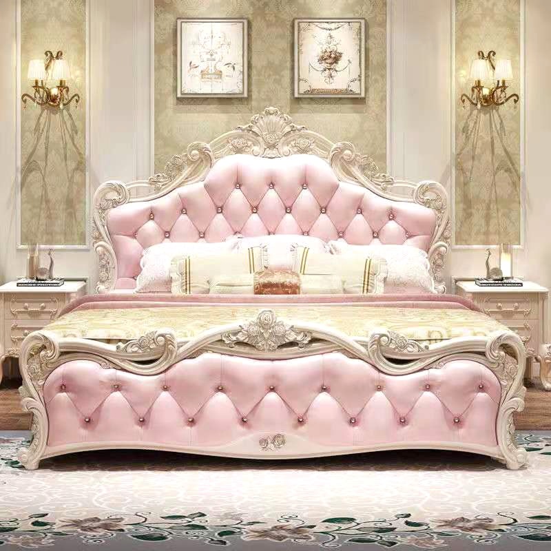 佛山ベッドマスターベッドルーム雰囲気ヨーロピアンスタイルベッドモダンシンプル無垢材プリンセスベッドシンプルヨーロピアンダブルベッドピンクレザーウェディングベッドマスター