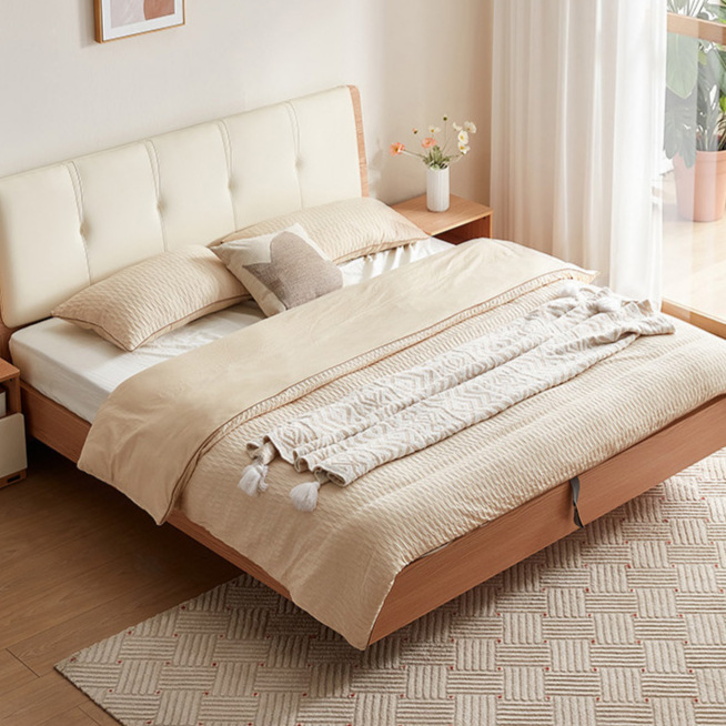 佛山家具シンプルな 1.5m シングルベッド 2025 新しいマスターベッドルーム無垢材の足 1.8m ダブルベッド工場直販
