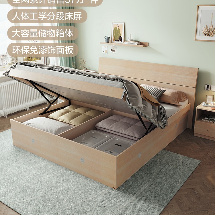 佛山家具モダンシンプルなプレートベッドマスターベッドルームレンタルルームハイボックス収納ベッド 1.8m ダブルベッド家具