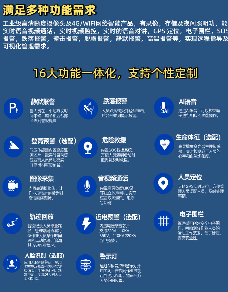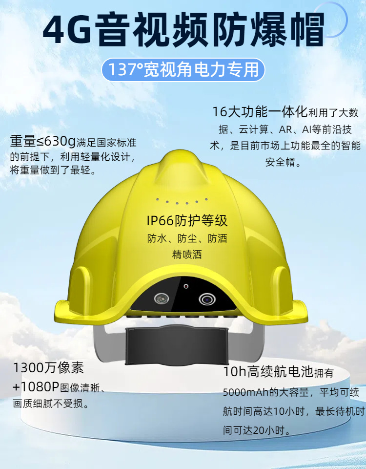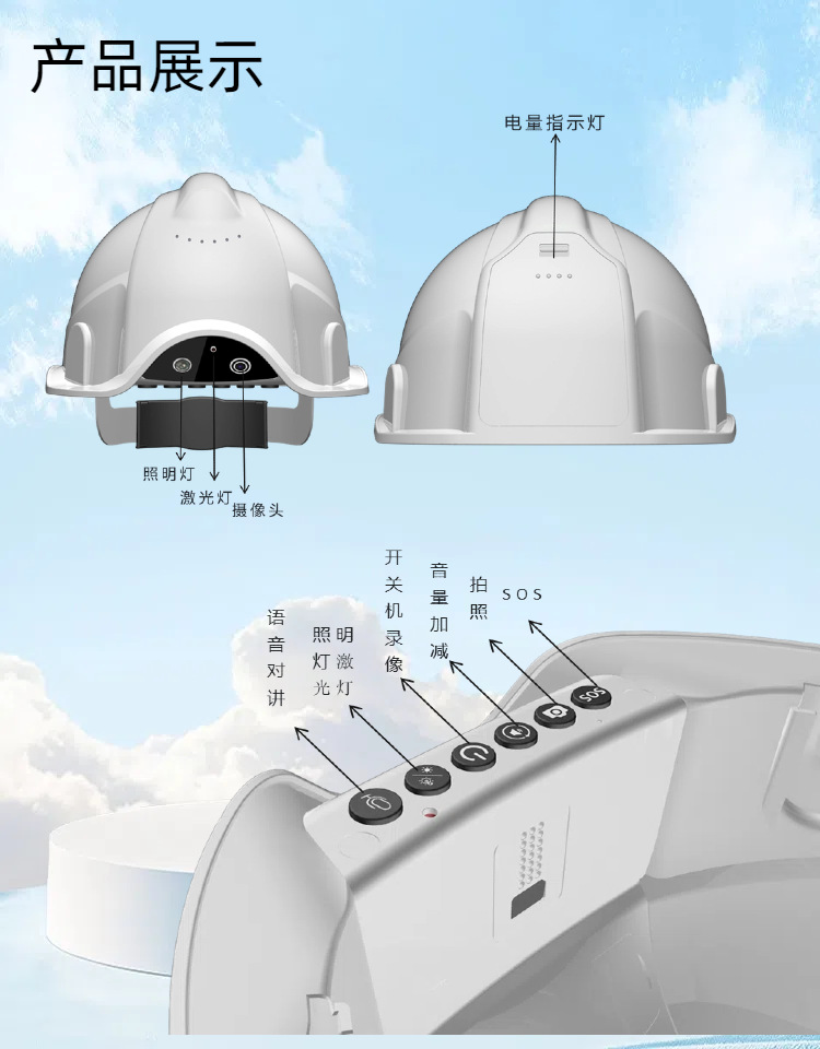 摄像智能安全头盔记录仪4G定位安全帽5G音视频远程监控对讲AI语音