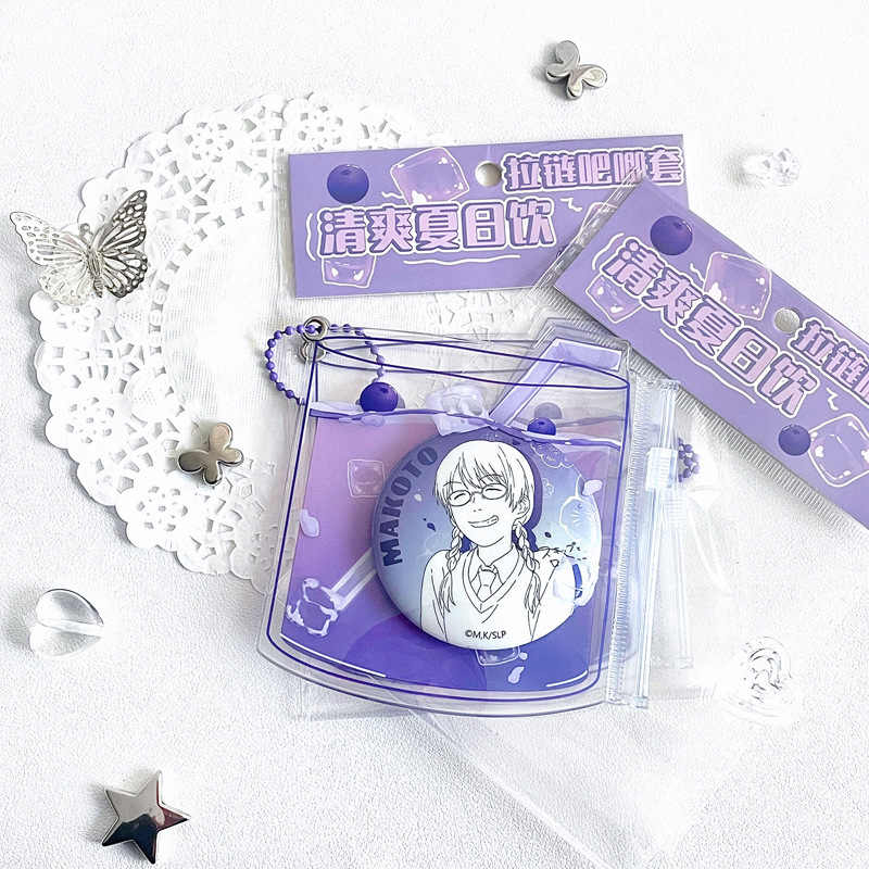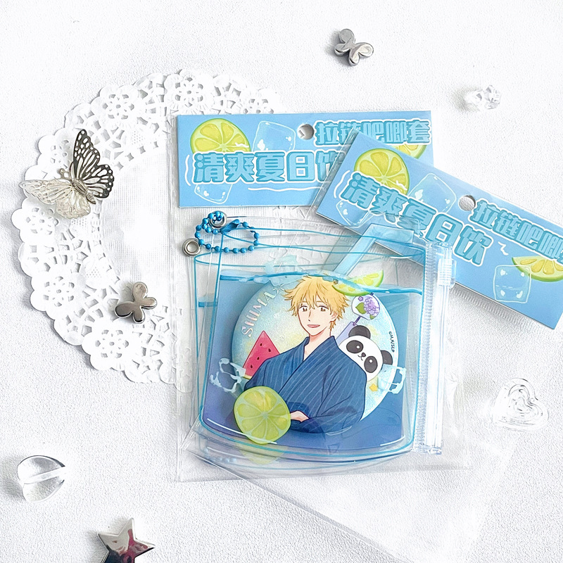 清爽夏日饮吧唧套原创谷美收纳袋二次元展示挂件徽章收纳保护套