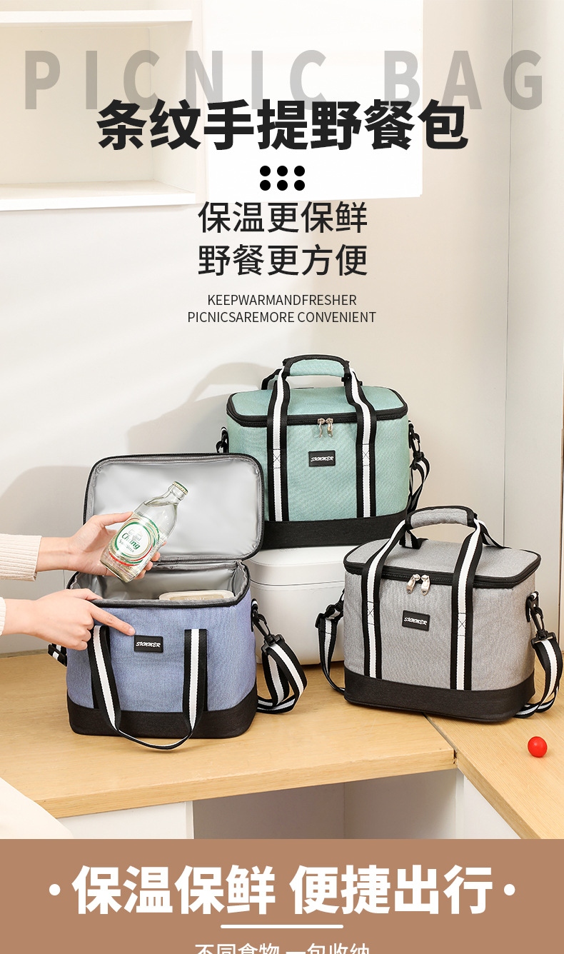 国境を越えた新しいストライプランチバッグ、特大断熱バッグ、ポータブルランチボックスバッグ、断熱食事バッグ、屋外ピクニックバッグ