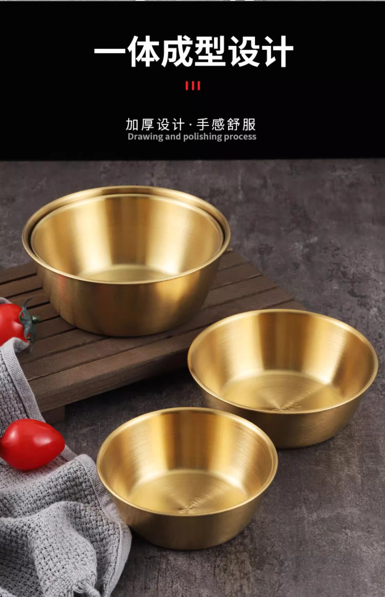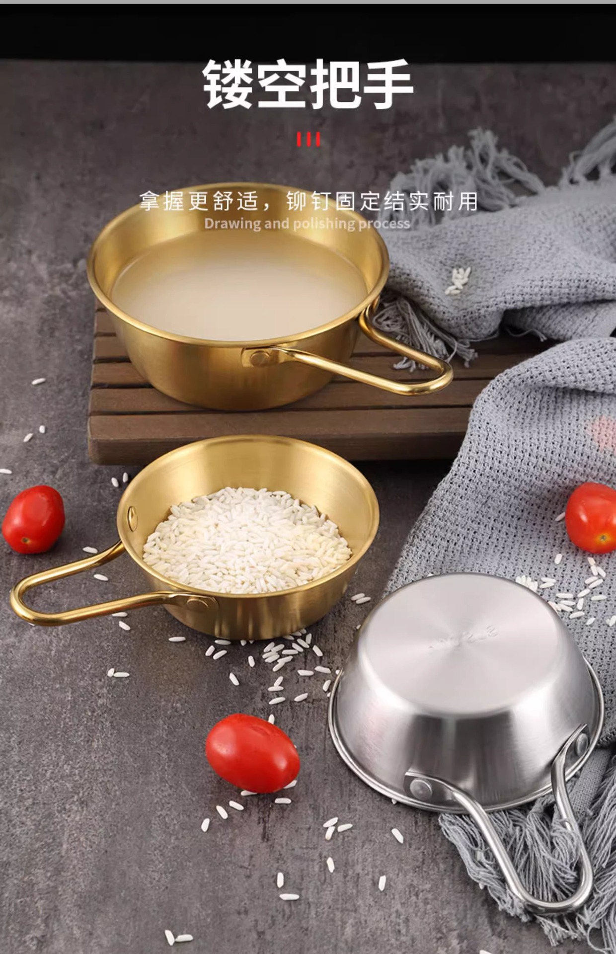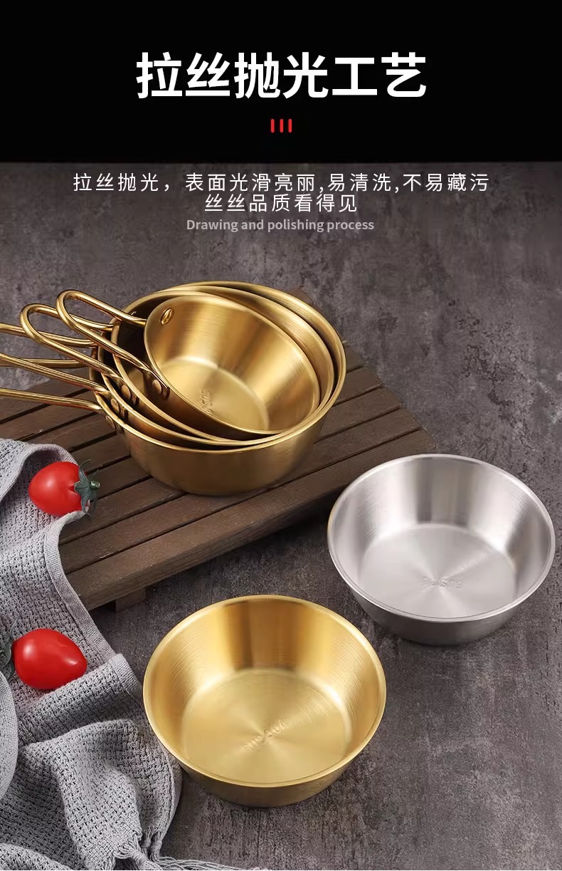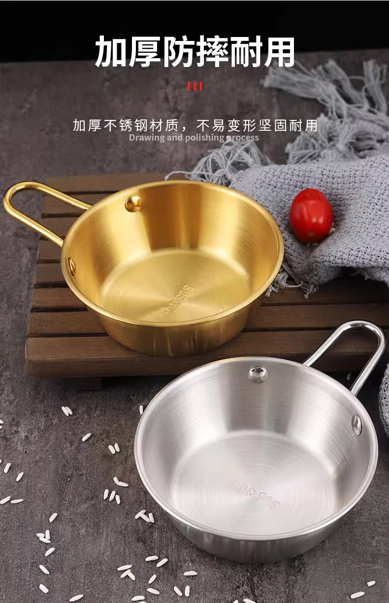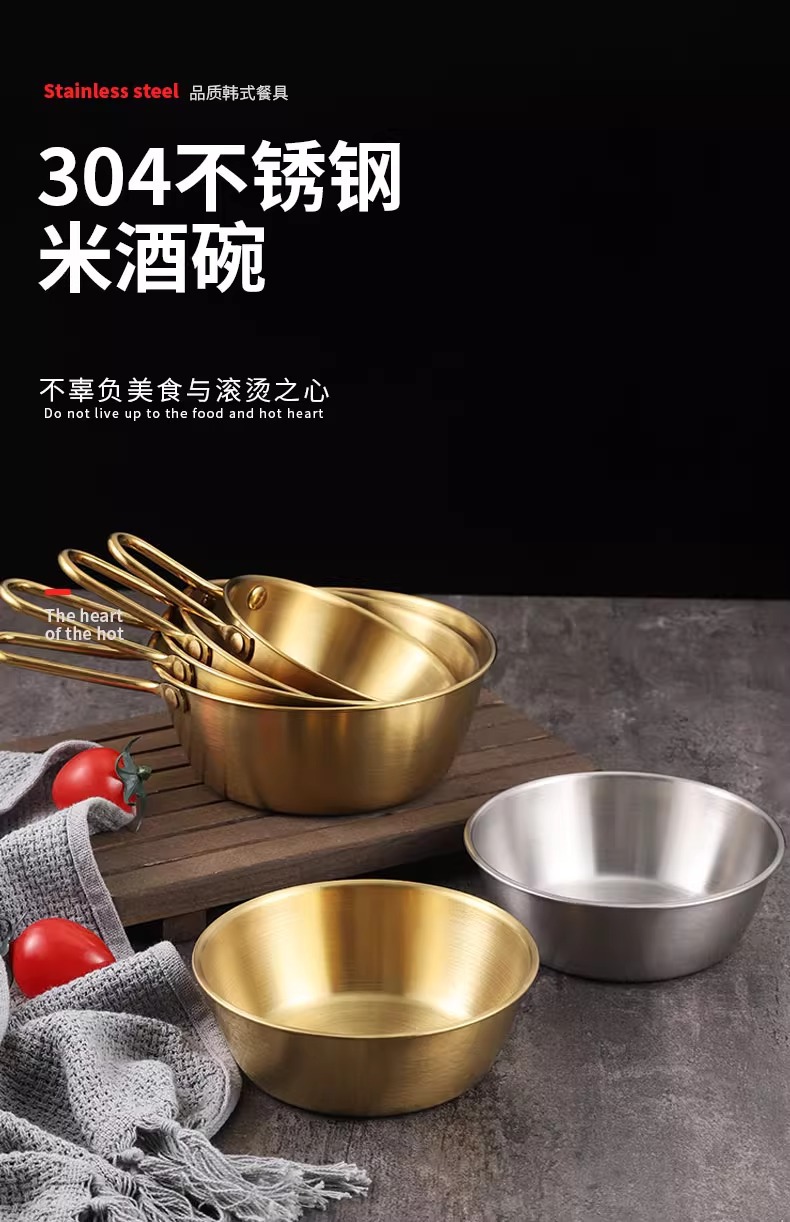 304不锈钢韩式米酒碗商用金色带柄泡菜碗调料碗加厚户外雪拉碗