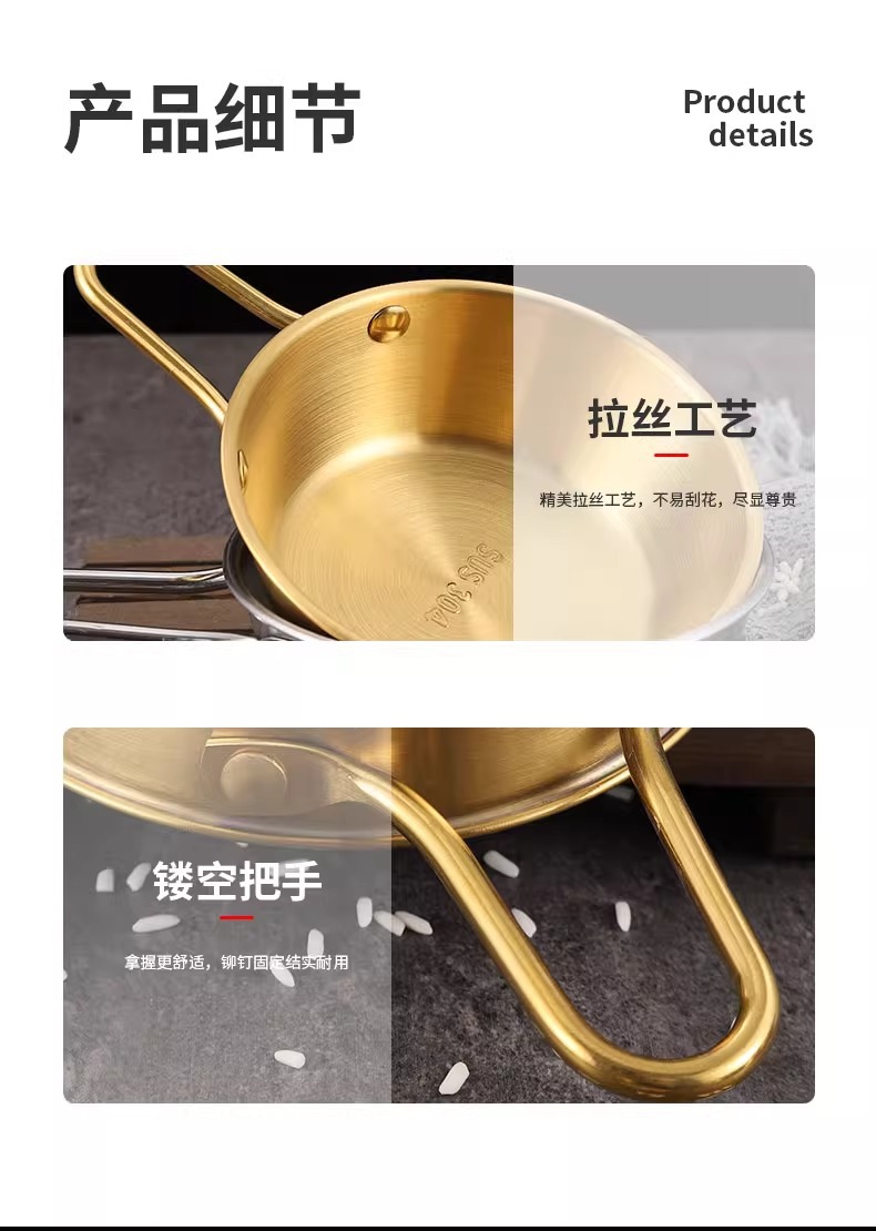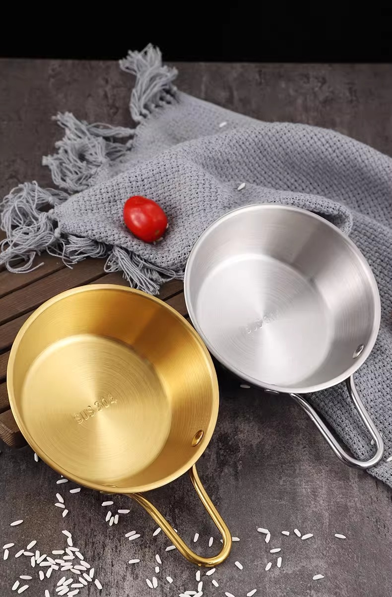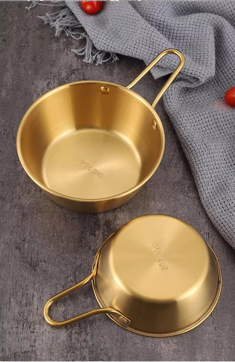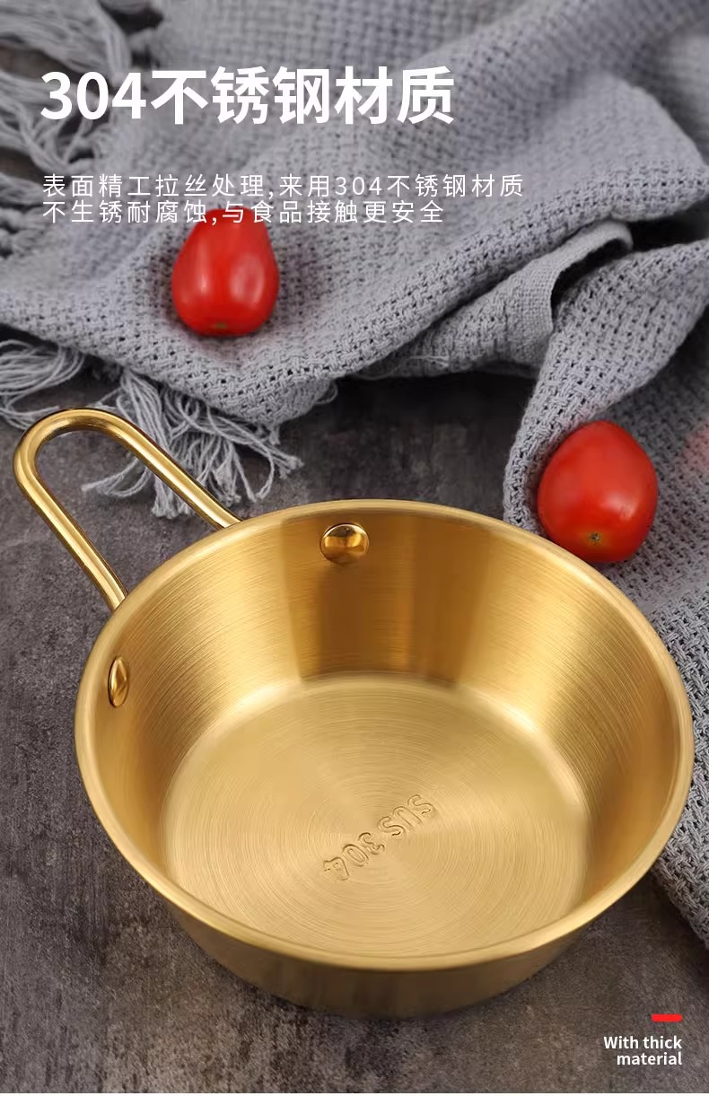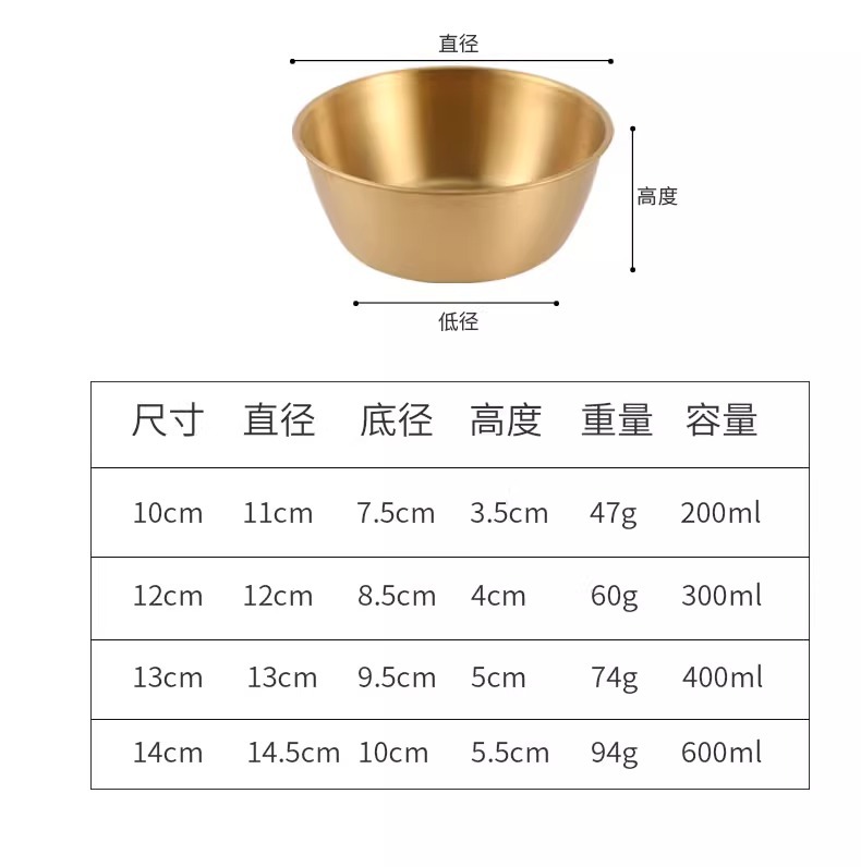 304不锈钢韩式米酒碗商用金色带柄泡菜碗调料碗加厚户外雪拉碗