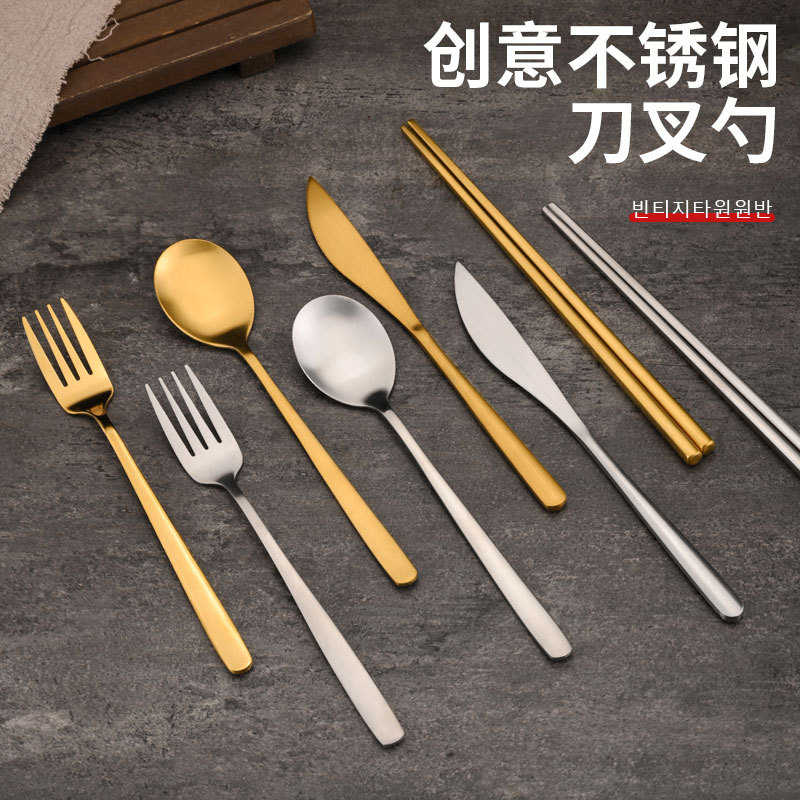 韓国 304 ステンレス鋼の箸家庭用滑り止め平箸ソリッドゴールデン箸スプーン正方形商業バーベキューレストラン食器