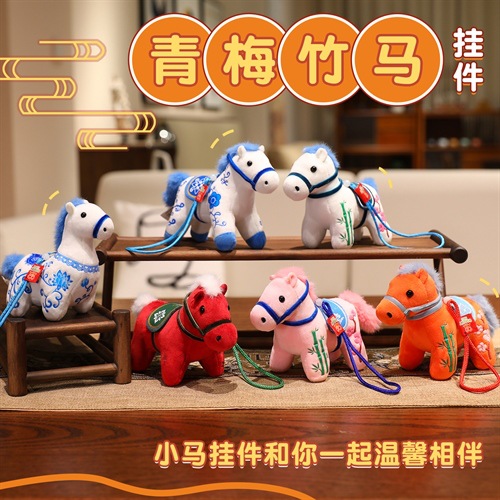 中国风民俗小马挂件毛绒玩具公仔青花瓷马年吉祥物包包挂饰钥匙扣