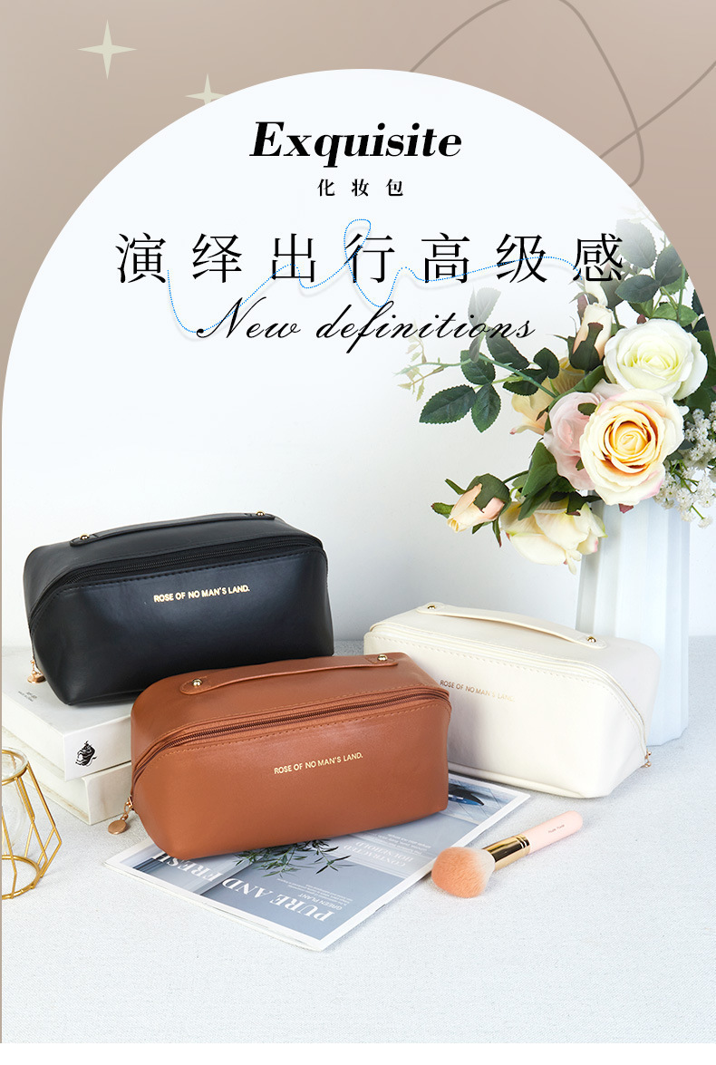 ins高颜值手提化妆包大容量高级感分区收纳包防水pu便携式洗漱包