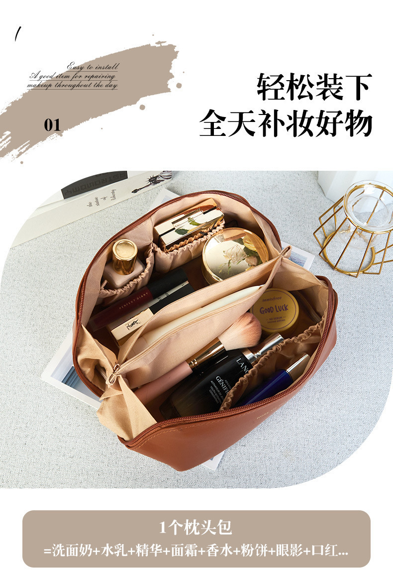 PU ポータブル収納化粧品バッグポータブル大容量シンプルな枕バッグ女性の旅行防水クロスボーダートイレタリーバッグ