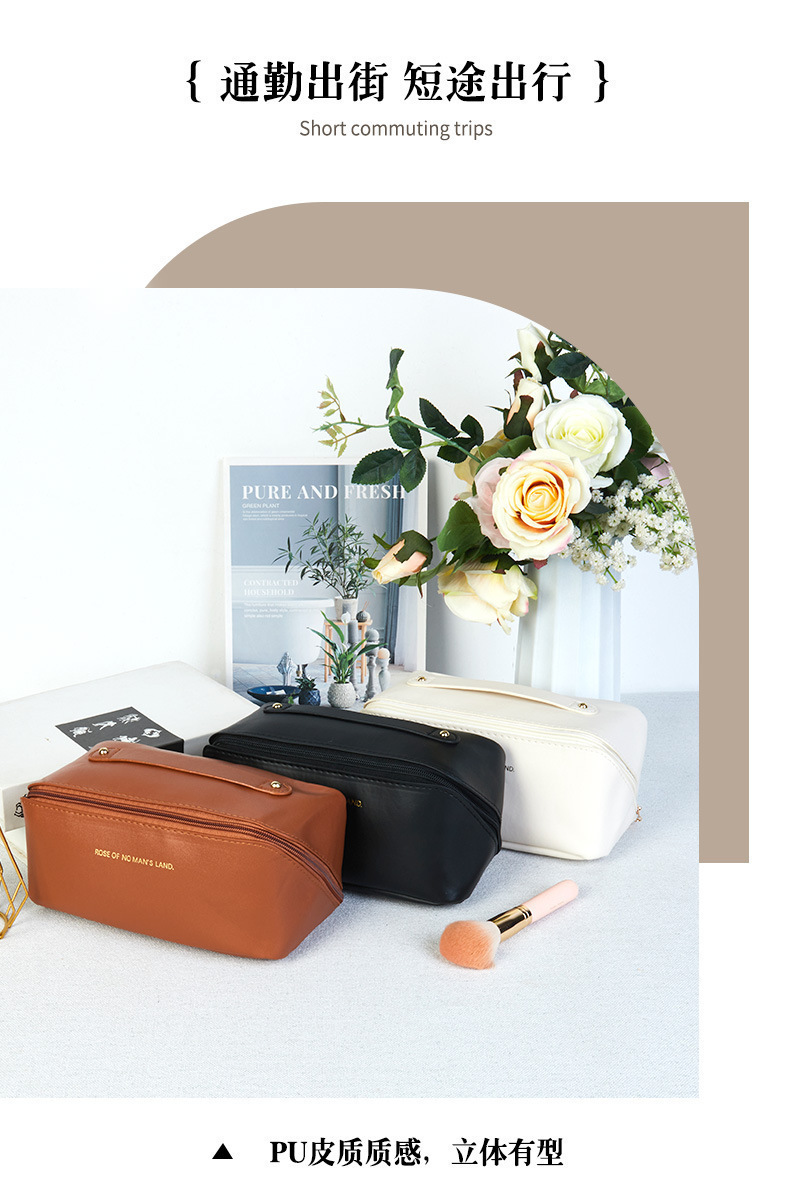 PU手提收纳化妆包便携大容量简约枕头包女士款旅行防水跨境洗漱包