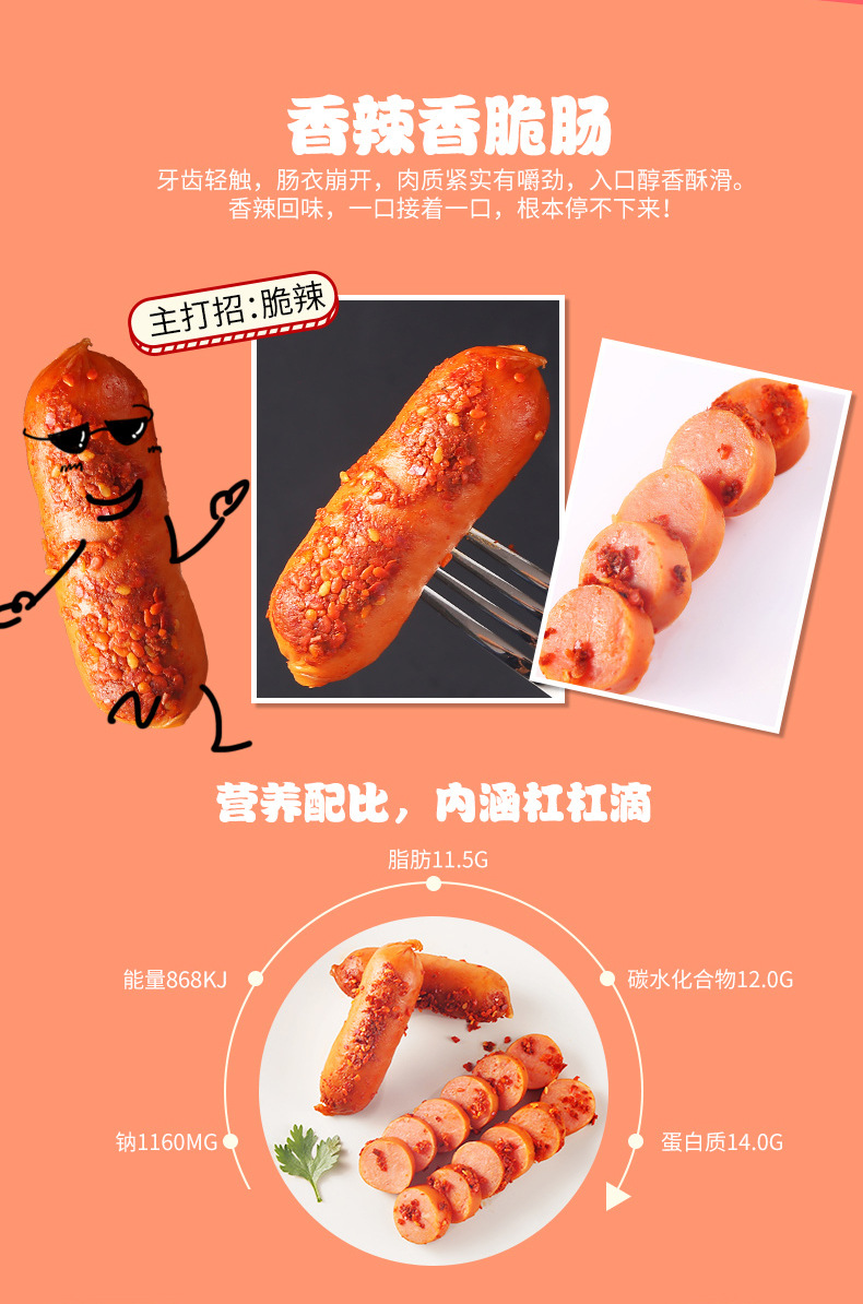 双匯ハムソーセージ、スパイシーサクサクソーセージ、スナック、スナック、コーンホットドッグソーセージ、焼きソーセージ、スナック食品、ソーセージ、全箱