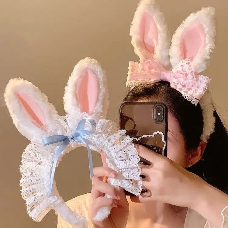 かわいいリボンウサギの耳ぬいぐるみヘッドバンドレース洗顔ヘッドバンド子供用ヘアピン 2025 新しい帽子