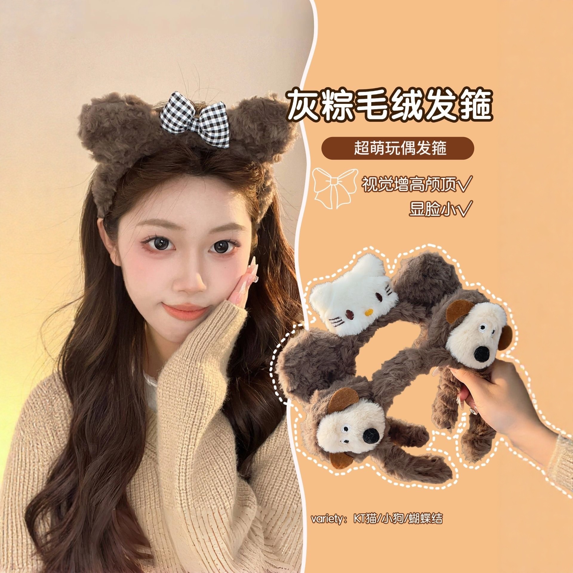 蝴蝶结发箍~可爱毛绒绒小熊耳朵头箍洗脸束发带发卡秋冬发饰发卡