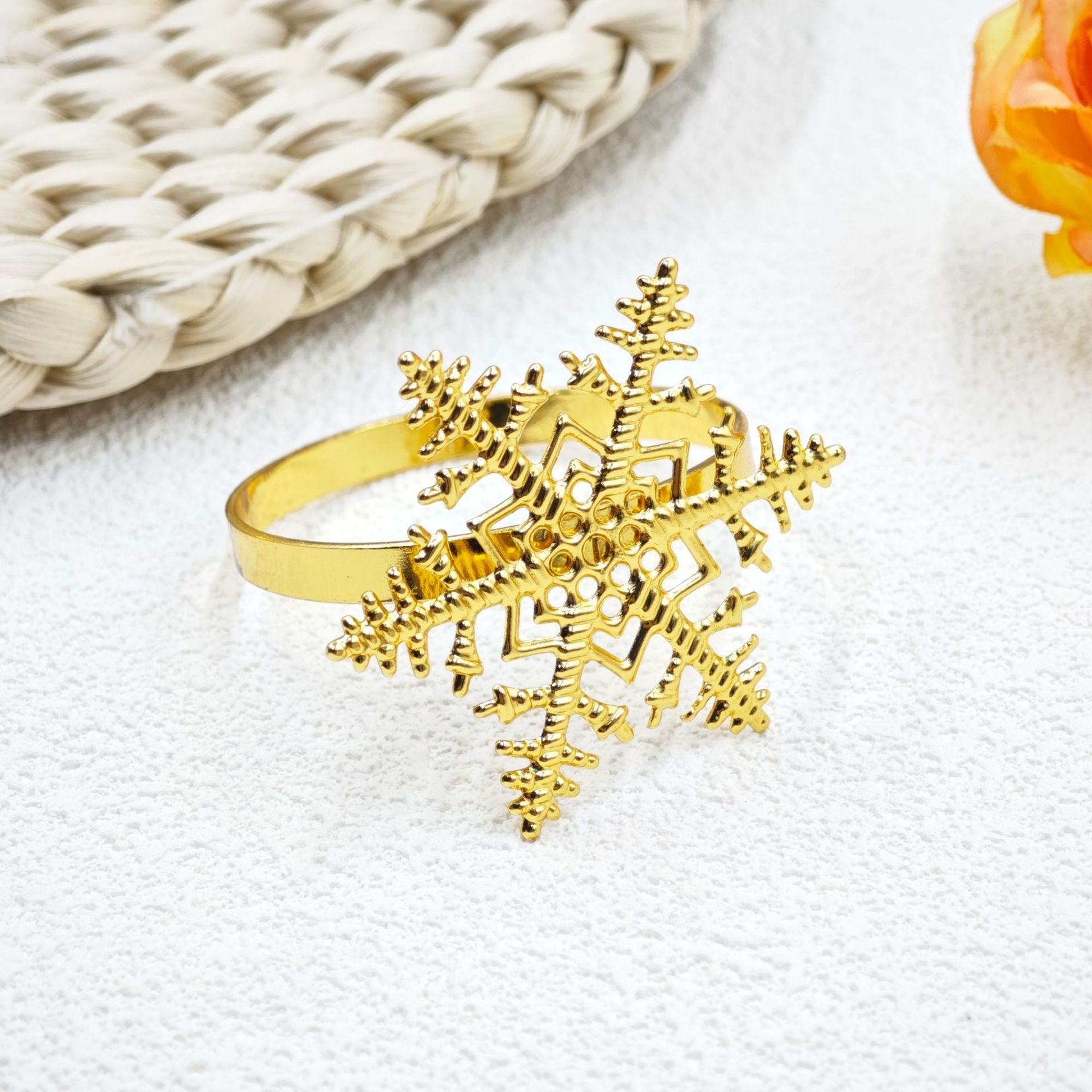 跨境金色雪花圣诞餐巾环 酒店餐桌摆台装饰合金餐巾扣餐巾圈批发