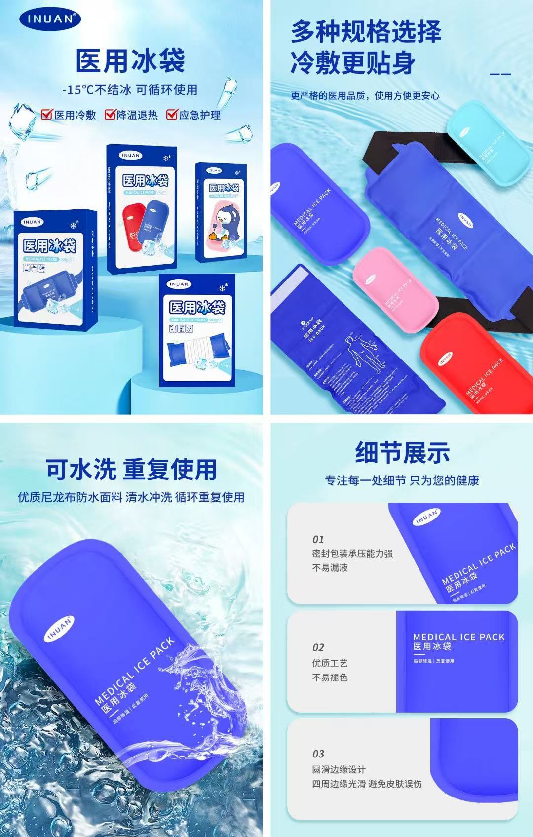 爱护佳 医用冰袋100g/袋--1袋,海氏海诺 A359.医用冰垫 敷贴冰袋(普通型 305g)1个/盒--1盒,海氏海诺 海润 医用冰袋(眼部型)冷敷眼罩—1盒,海氏海诺 A019B.一次性医用冰袋 120g/袋*6袋/盒—1盒,海氏海诺 海润 医用冰袋(240g 乳腺型)—1盒,海氏海诺 海润 医用冰袋(面部型)冷敷面罩—1盒,倍适威 医用冰袋Ⅱ型 无需预冷 100g/袋--1袋 (独家),艾暖一次性医用冰袋OPIS-BD-11(120克)6袋/盒----1盒,海氏海诺 海润 医用冰袋(头部型)冷敷头带—1盒,海润 EVA便携胰岛素冷藏包(内置冰袋、温度显示条)—1盒(更新包装卫特多),艾暖医用冰袋150gAL01(儿童款)-----1盒,倍适威医用冰袋-120g-6袋/盒—1盒,艾暖医用冰袋250gAL02(成人款)---1盒,洁适兰 医用冰袋(头部)GY-IC-II80--1盒,海氏海诺 A088医用冰袋(一次性速冷型) 200g/袋*6袋/盒—1盒,海氏海诺 控销ZD40(H).医用冰袋 120g/袋*6袋/盒—1盒,海氏海诺 乐一享三 医用冰袋120g*6袋/盒—1盒,倍适威医用冰袋II型200g 6袋/盒—1盒,棉氏佳族医用冰袋100克6袋/盒—1盒,海氏海诺 海润 医用冰袋(250g 冷热两用型)—1盒(更新包装),艾暖 AL05医用冰袋 500g(腰肩款)--1盒,艾暖 AL07医用冰袋 (四肢款)可绑冰袋 1个/盒--1盒,海润 医用冰袋(300g 冷热两用型)—1盒,海氏海诺 海润 超耐久胰岛素冷藏包(内置冰袋、温度计)—1盒,艾暖 医用冰袋 200g(胰岛素冷藏包)--1盒,海氏海诺 乐一享三 医用冰袋120g*10袋/盒—1盒,洁适兰 医用冰袋(面部)GY-IC-II200---1盒,领多 医用冰袋(眼部型)冷热双敷眼罩—1盒,领多 医用冰袋(面部型)冷热双敷面罩—1盒,洁适兰 医用冰袋(胸部)GY-IC-II260--1盒,艾暖一次性医用冰袋OPIS-BD-11(200克)6袋/盒---1盒,艾暖 AL24医用冰袋(卡通 熊猫款)100g/袋*6袋/盒---1盒,洁适兰 医用冰袋(眼部)GY-IC-II120--1盒,领多 医用冰袋(乳腺型)乳房冷热双敷垫—1盒,海氏海诺 乐一享三 医用冰袋200g-10袋/盒—1盒,领多 医用冰袋(头部型)冷热双敷头袋—1盒,医用冰袋170克AL21(冷敷眼罩)---盒,海氏海诺 乐一享三 医用冰袋200g*6袋/盒—1盒,医用冰袋250克AL23(冷敷双面)----盒,洁适兰 医用冰袋 (GY-1C-1180) 1条/袋--1袋,英诺威一次性使用医用冰袋200g/袋 6袋/盒—1盒,海氏海诺 海润 医用冰袋(450g 冷热两用型)—1盒,乐一享三-医用冰袋(胸部)GY-IC-II260 -------盒,卫特多 C010医用冰袋(冰枕 通用型800G)—1盒,艾暖 WL04医用冰袋(冷敷头带80g)1个/盒--1盒,艾暖 医用冰袋260克AL22(冷敷面罩单面)----盒,海氏海诺 A450#医用冰袋 100g/袋*6袋/盒