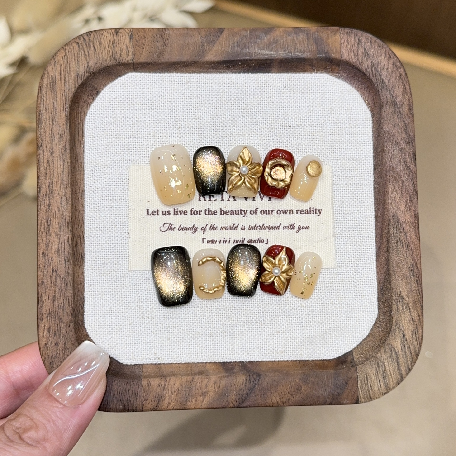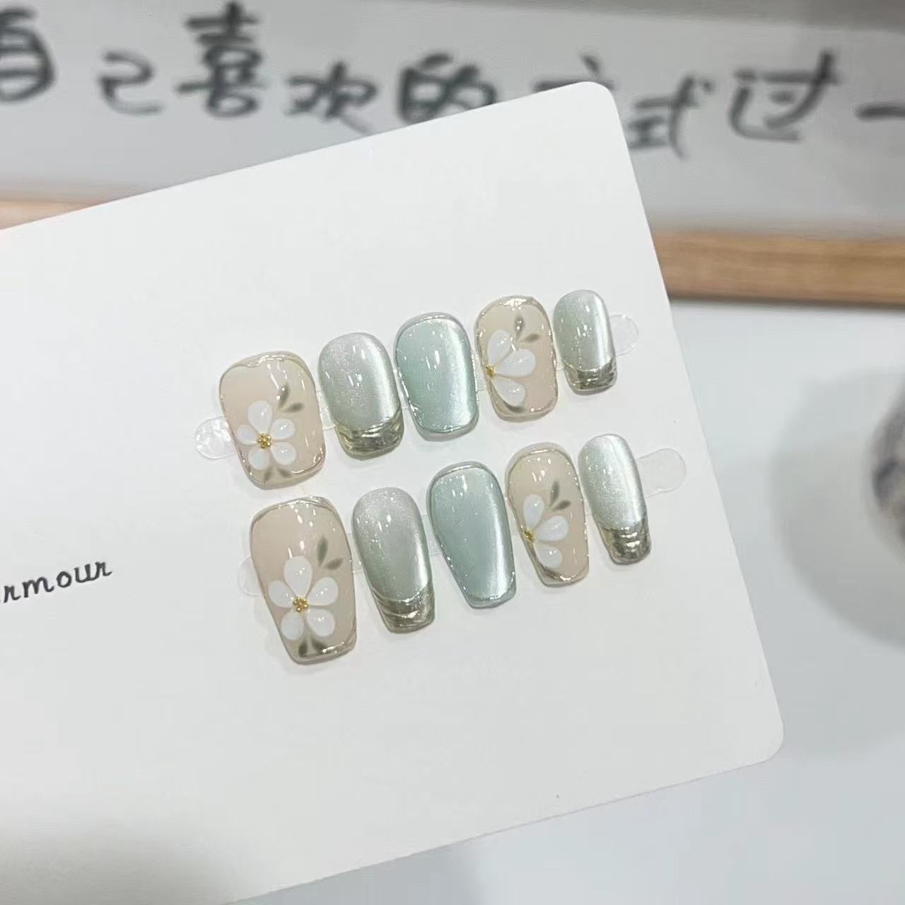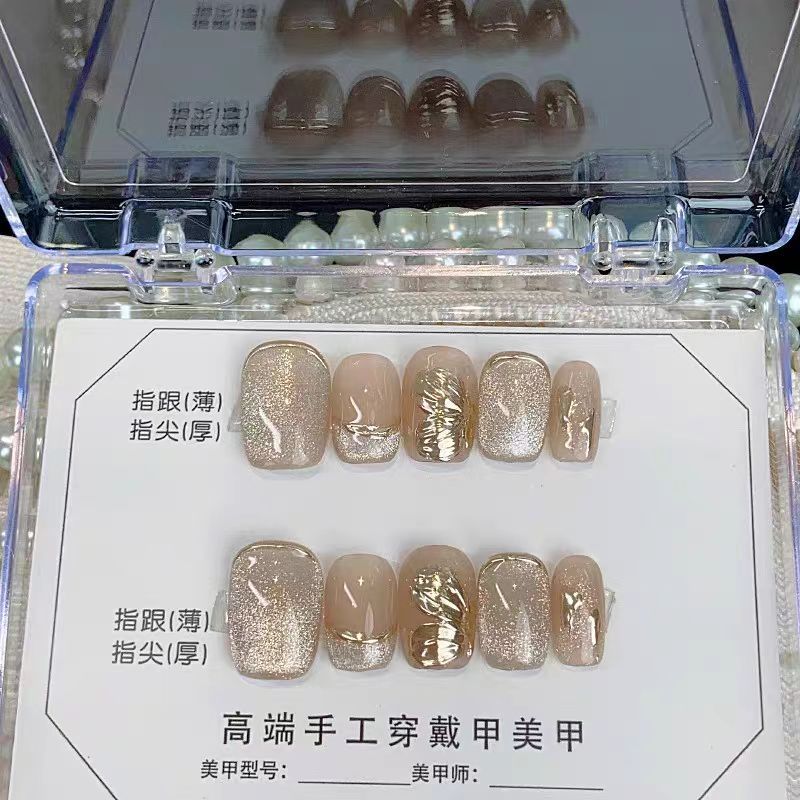 新款美甲纯手工穿戴甲显白甲片批发成品秋冬猫眼短款美甲贴片中方