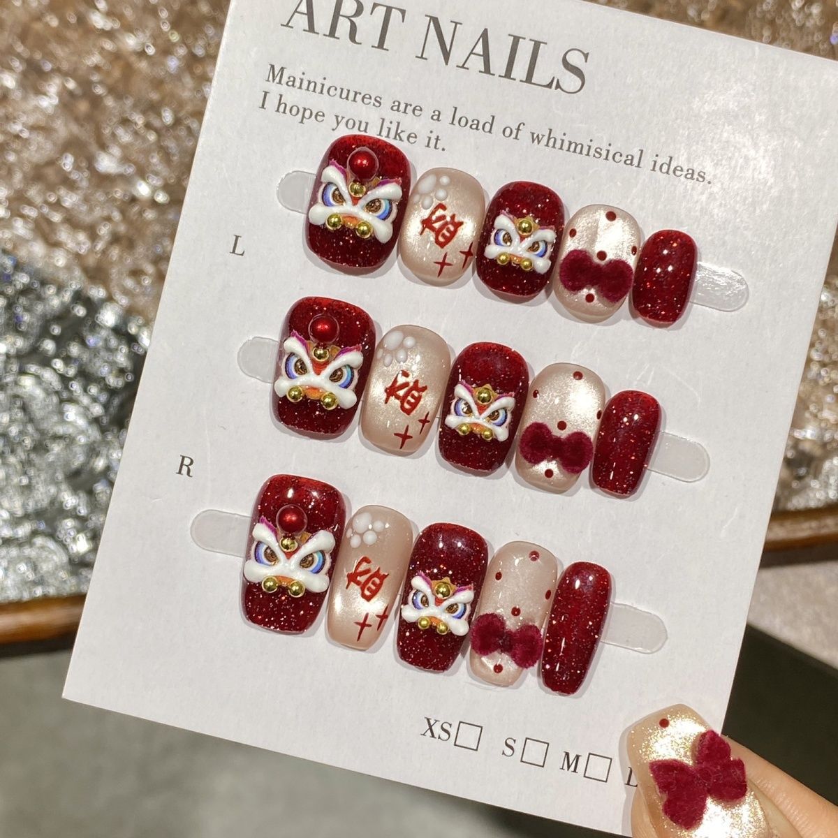 【纳财醒狮】新年氛围感手绘醒狮立体百搭小众手工穿戴甲美甲