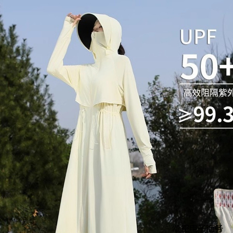 日焼け止め服妖精スタイル長袖フード付き日焼け止め服女性のためのロング全身ウエスト通気性抗 UV アイスシルクサンシェード