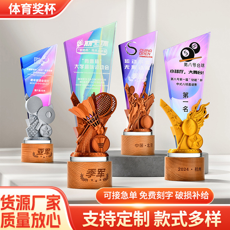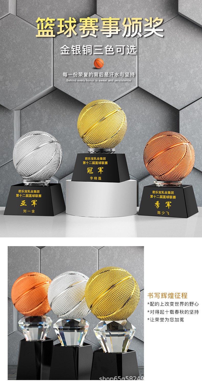 バスケットボールゲームクリスタルトロフィー彫刻サッカーピンポンバドミントンイベント金、銀、銅メダル製造工場