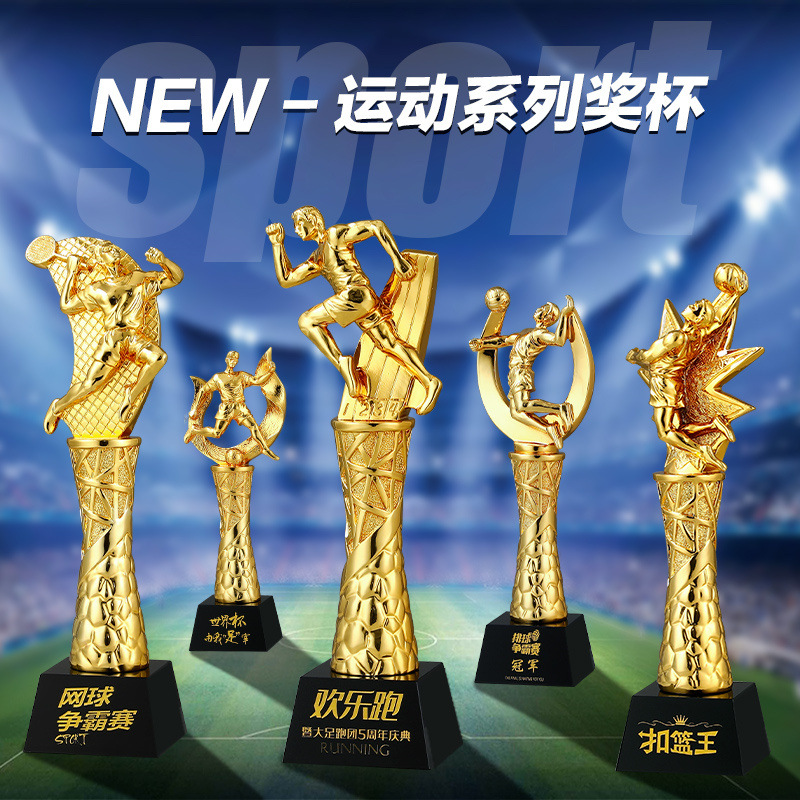クリエイティブなハイエンド大型樹脂トロフィーサッカーバスケットボールバレーボールバドミントンスポーツ競技賞電気メッキトロフィー