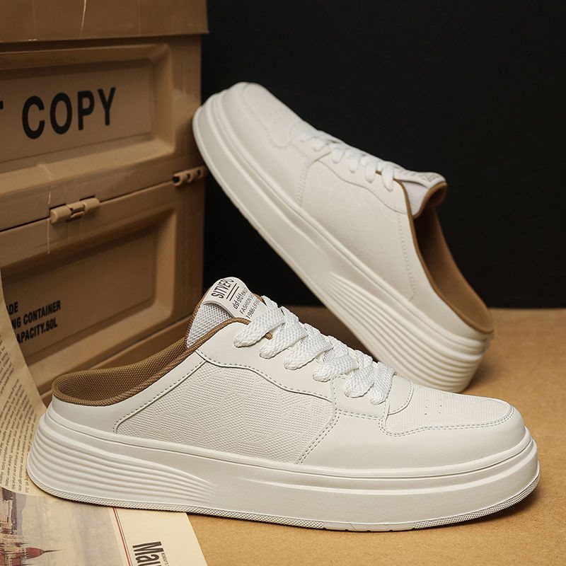 男性用スリッパ、夏用通気性滑り止めスリッポンスニーカー、オフィス用かかとなしスポーツつま先ハーフスリッポンサンダル