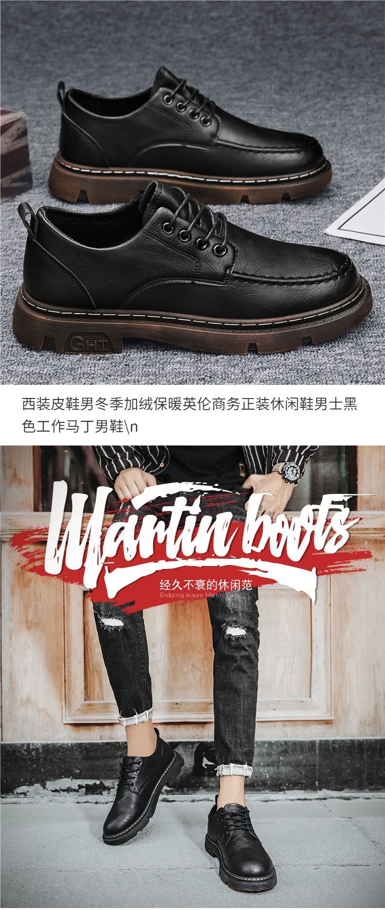 西装皮鞋男冬季加绒保暖英伦商务正装休闲鞋男士黑色工作马丁男鞋