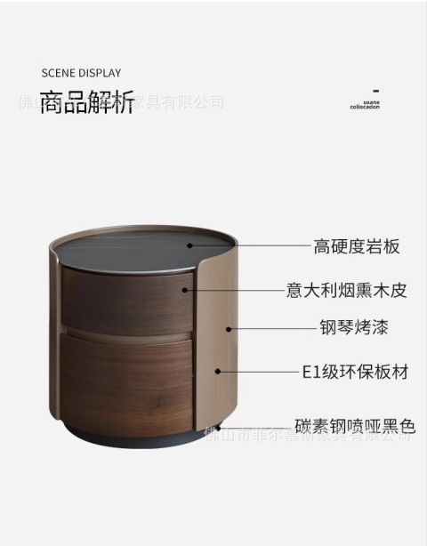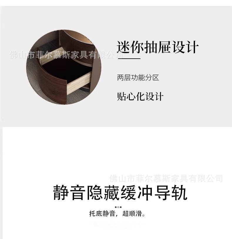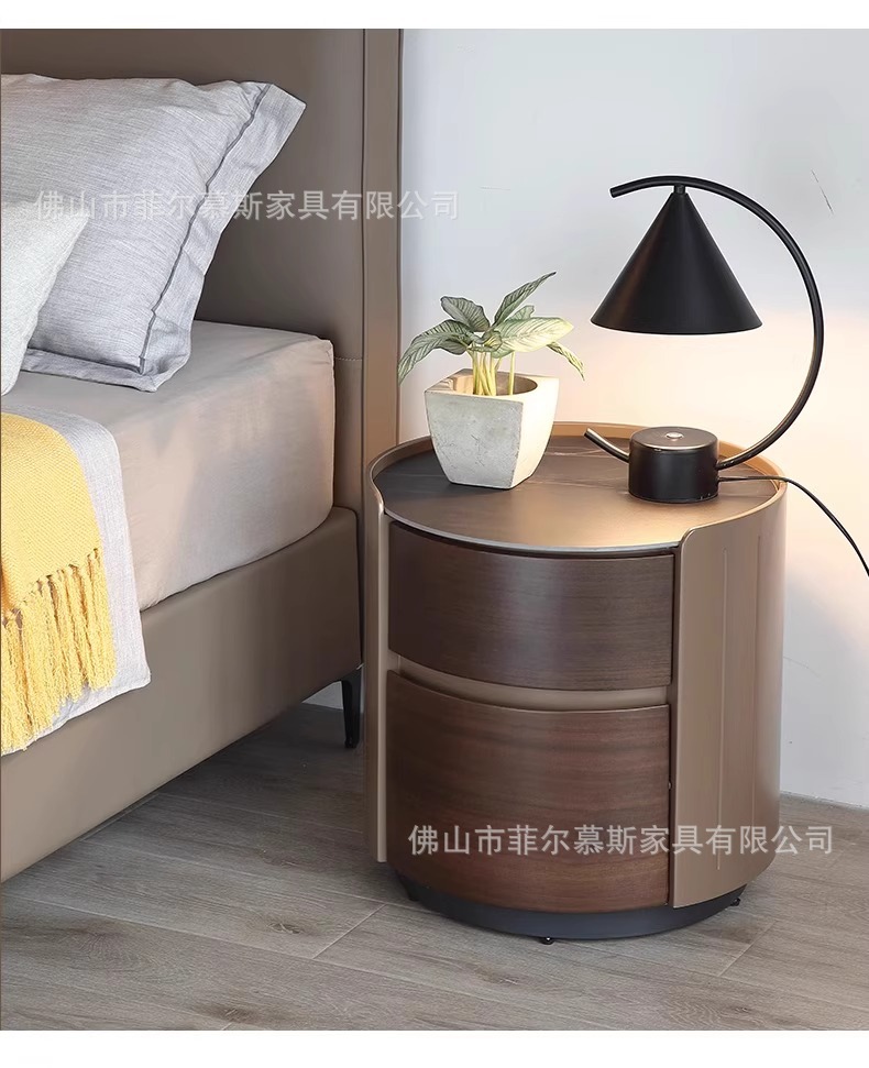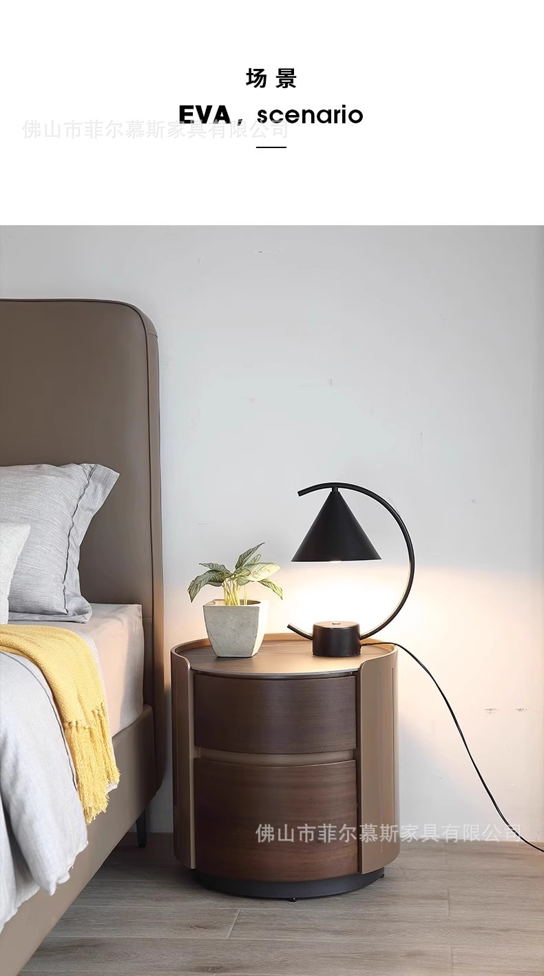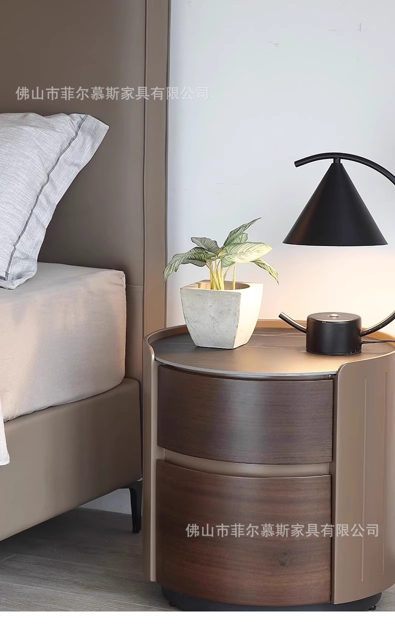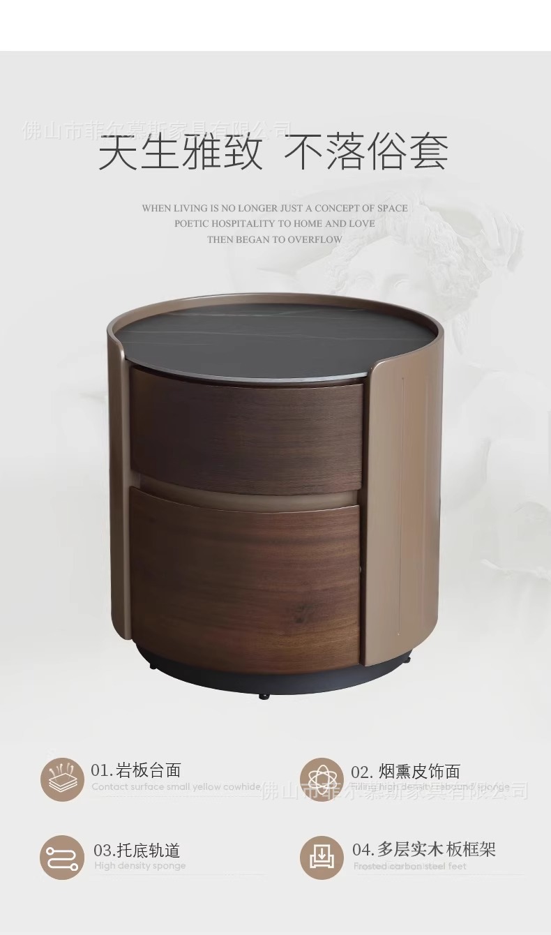 意式极简圆形岩板床头柜设计师Ltalian Designer主卧室储物床边柜