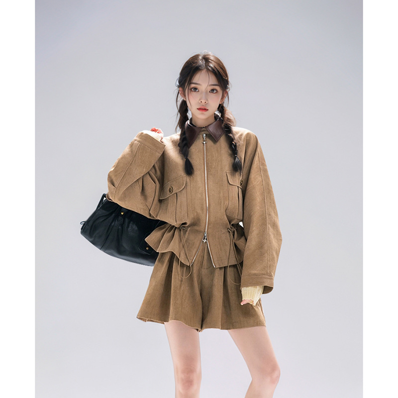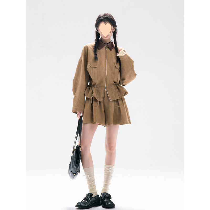 貿易婦人服 2025 秋ヨーロッパとアメリカンスタイルのウエストジャケット + カジュアルショーツスーツ女性 H525069/70F