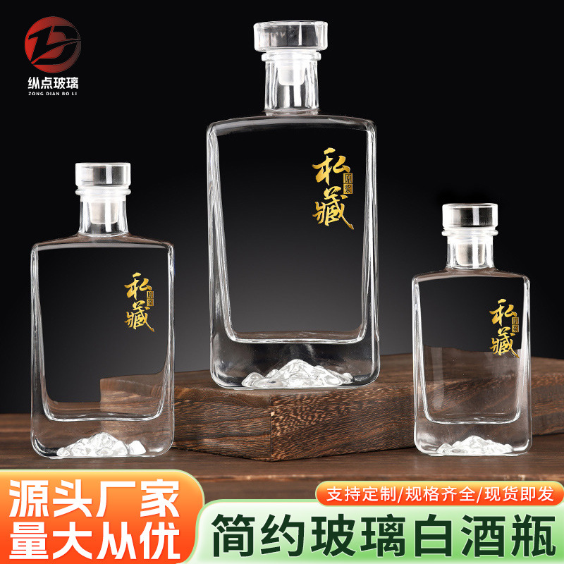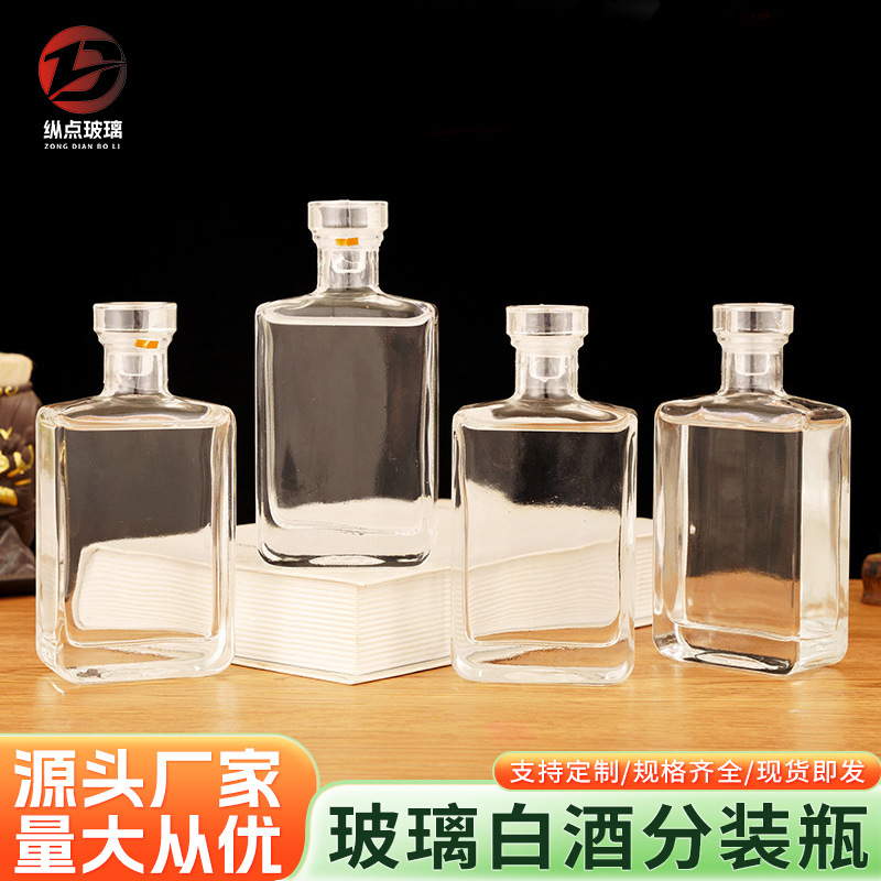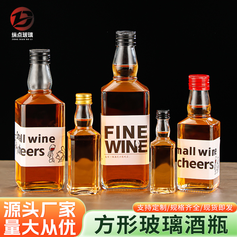 供应200ml方形白洋酒透明厚底玻璃果酒瓶自酿分装500毫升米黄酒瓶