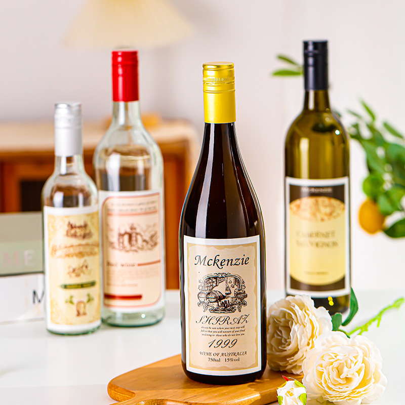 現物の結晶白透明500mlの厚いワインボトル250ミリリットルの太った丸い艶消し白シールは小さなワインボトルを分けた