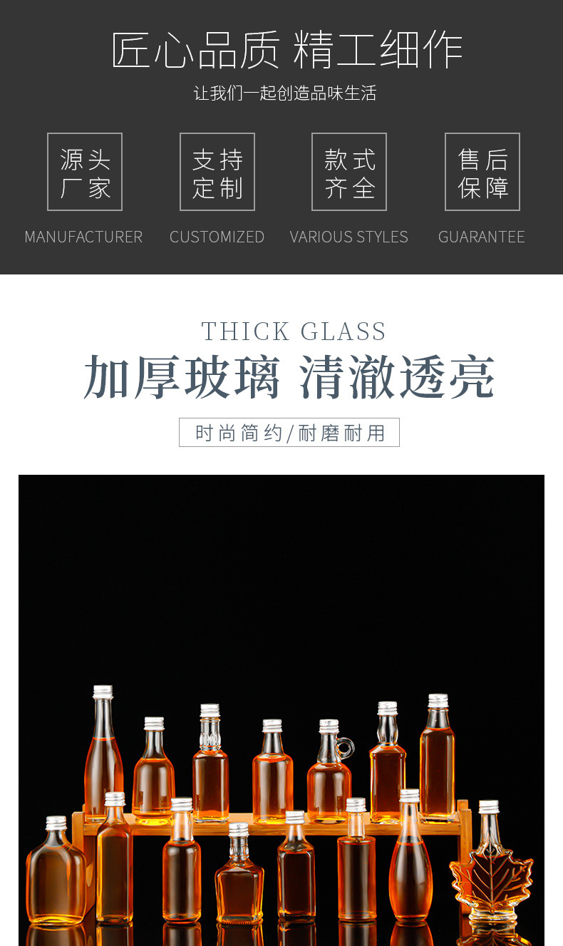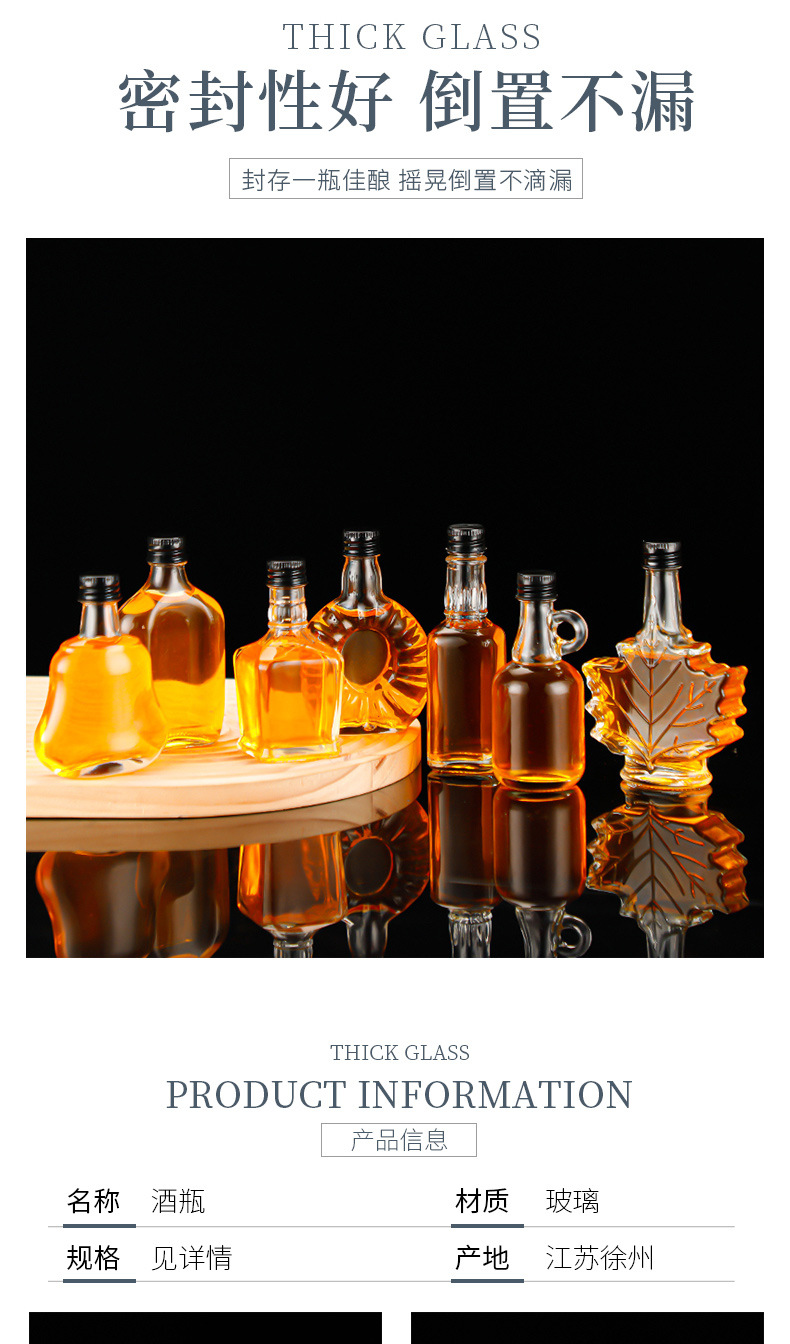 批发现货创意高颜值透明厚底玻璃果酒小酒瓶枫叶密封玻璃分装空瓶