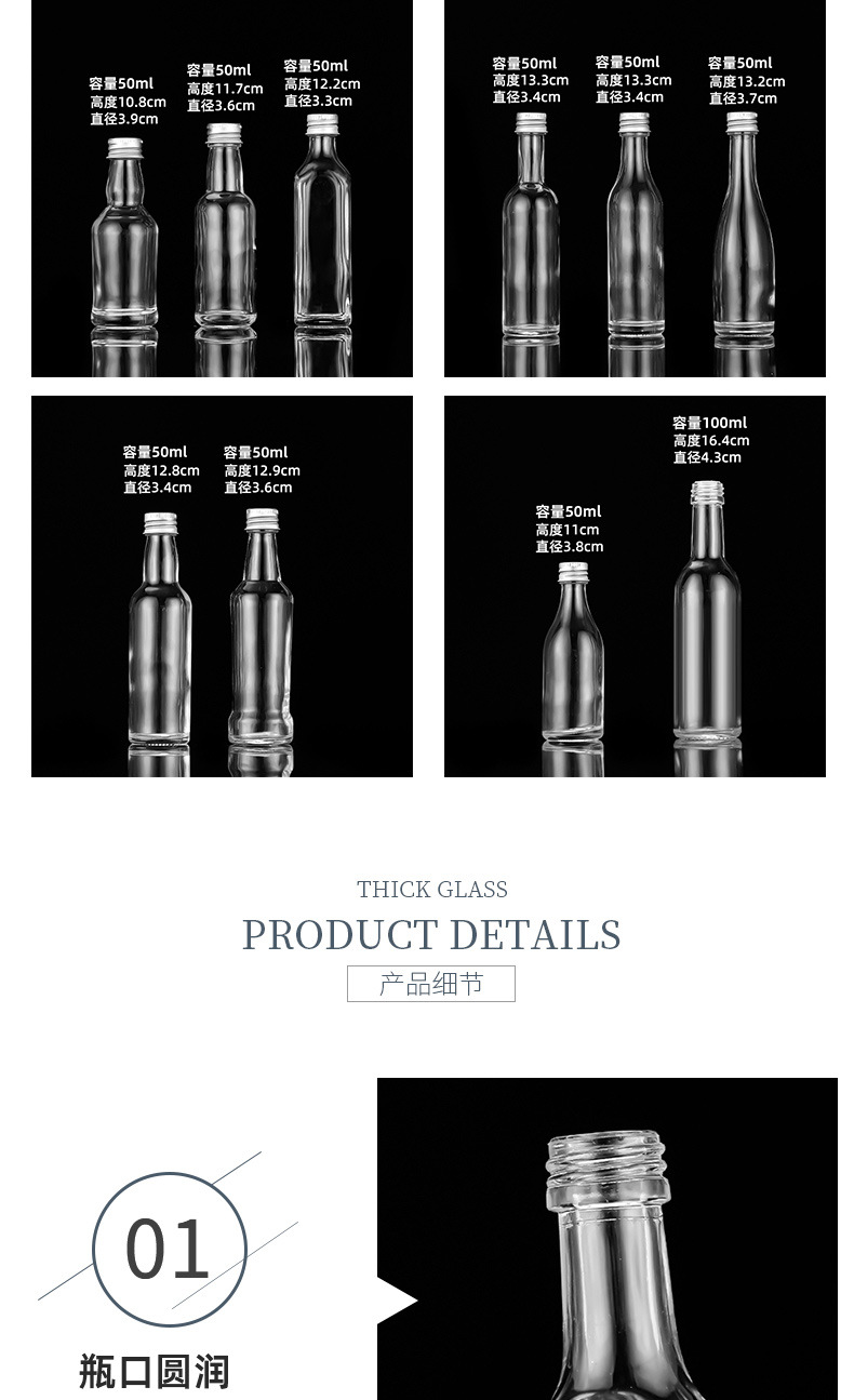 小酒瓶20mlガラス瓶50ml平弧形一両白酒瓶30ml保健酒瓶試飲酒瓶