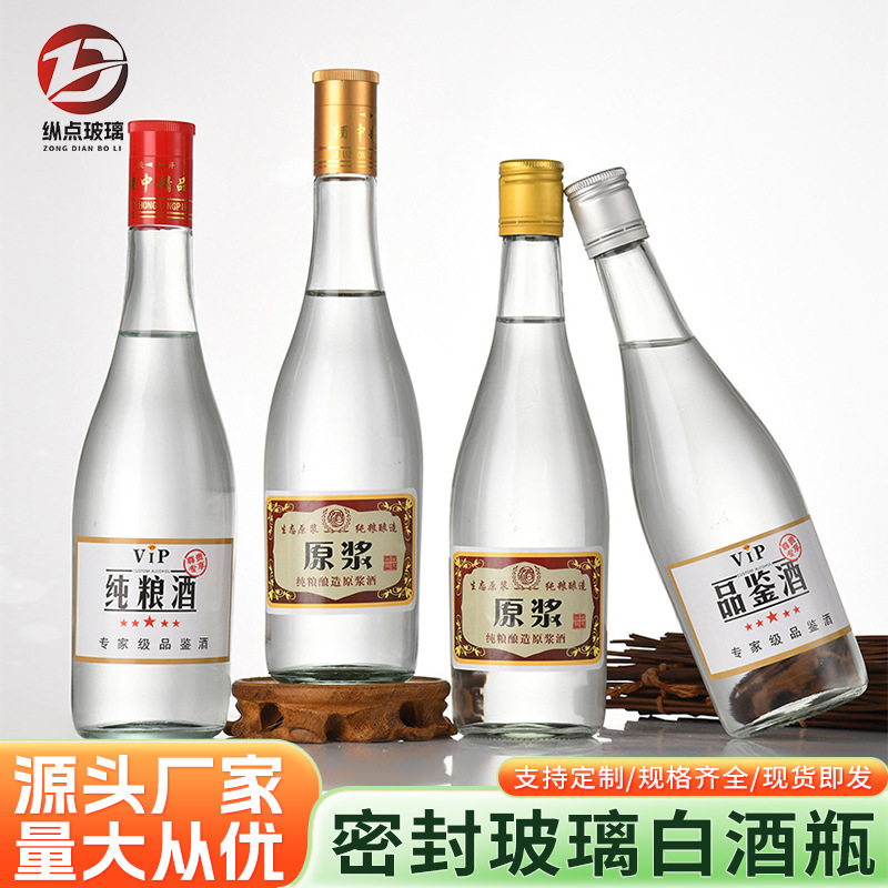 現品の500mlの透明なシルクの口は白い酒の瓶の圧力の口を密封して自分で醸造します。