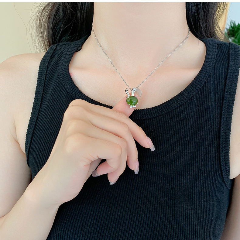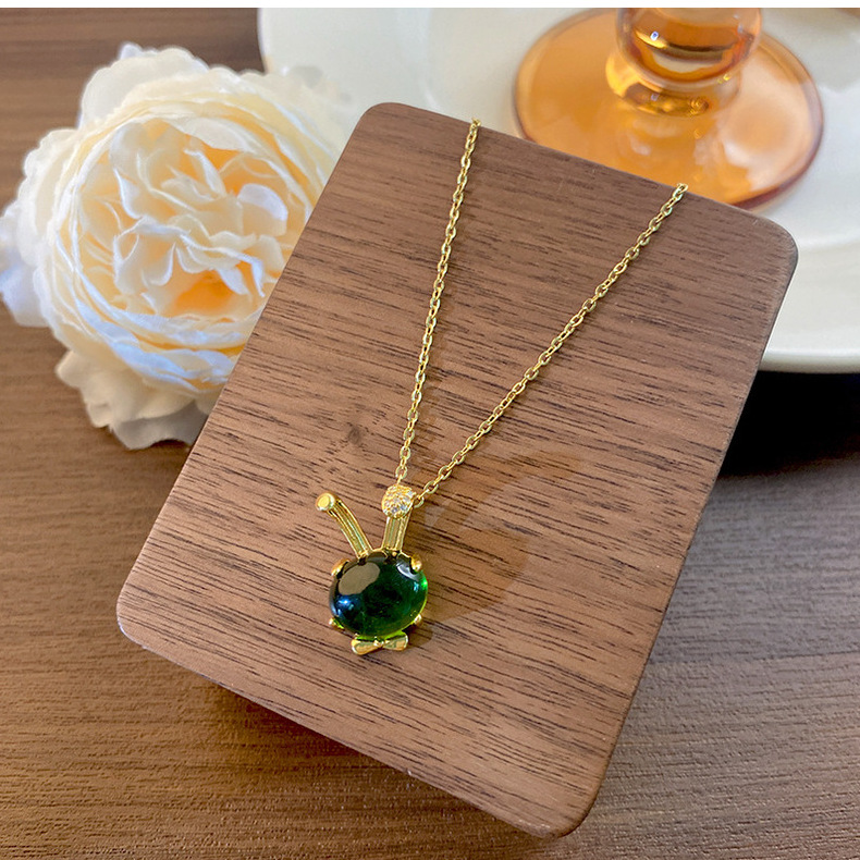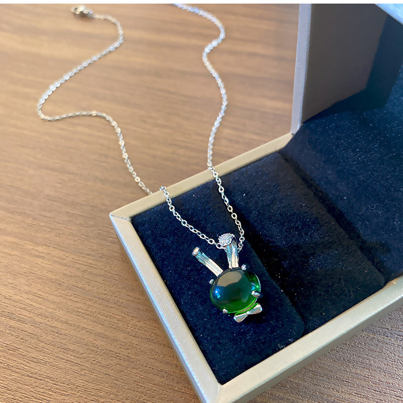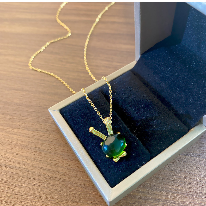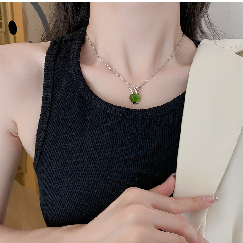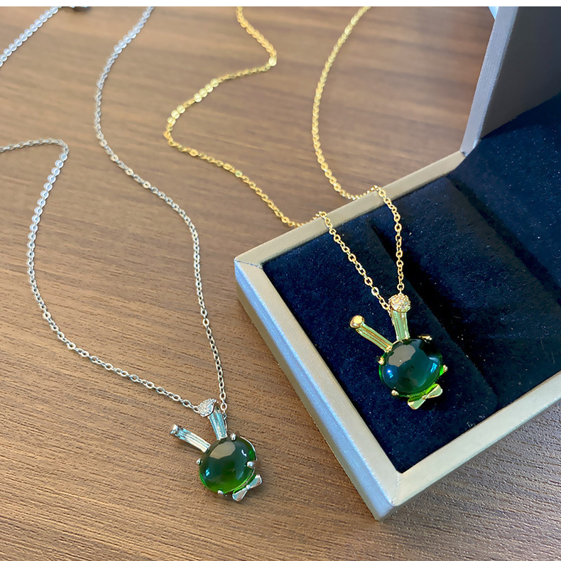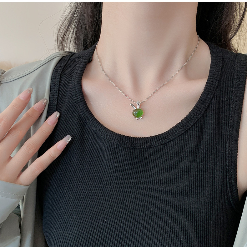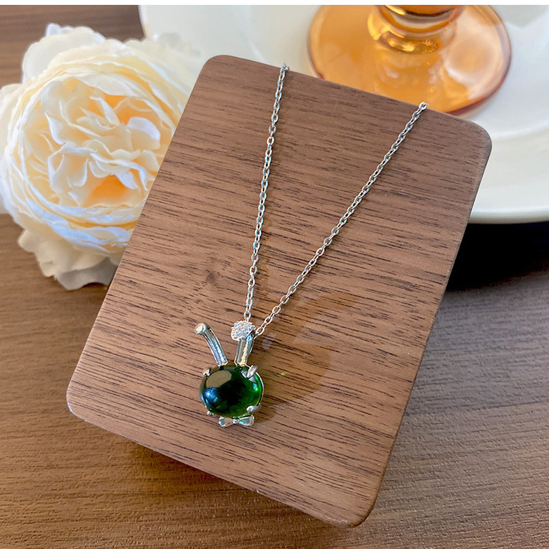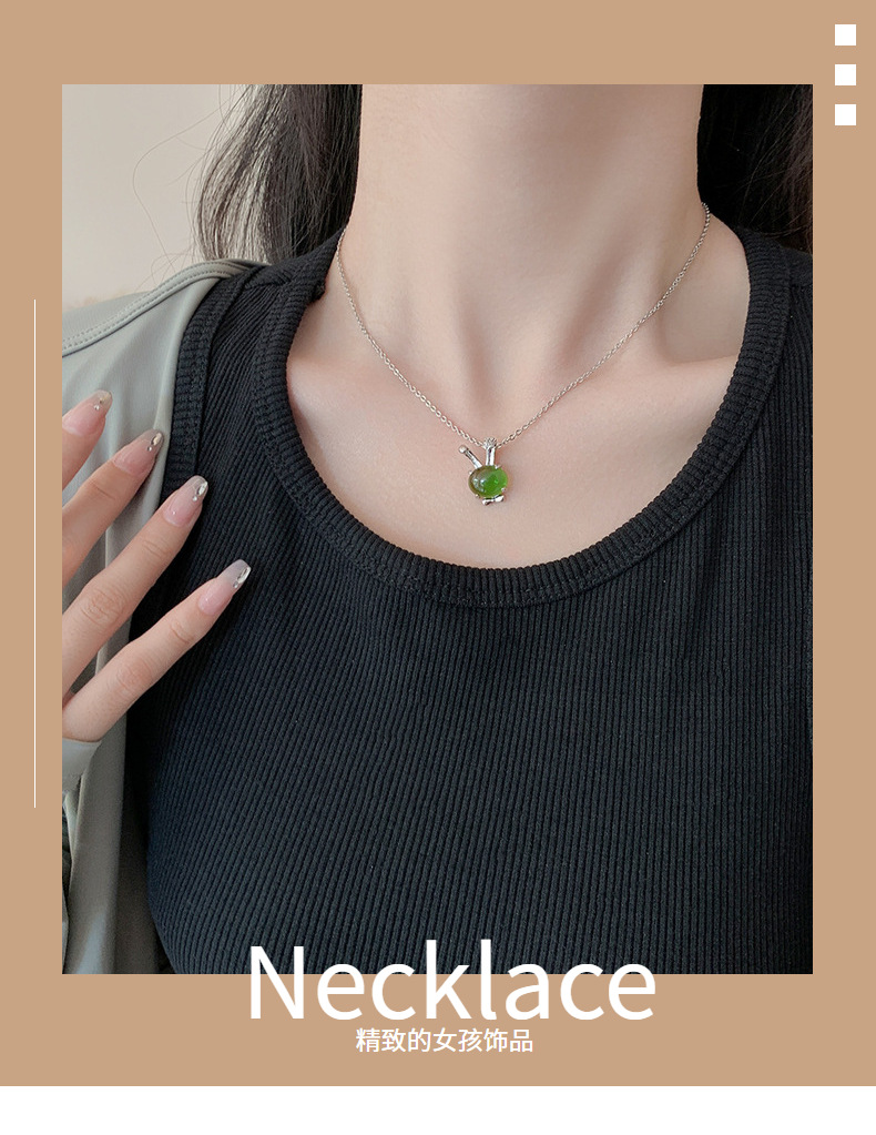 ファッショナブルでかわいいグリーンガラスバニーネックレス女性ニッチシンプルなデザインインターネットセレブ鎖骨チェーンジュエリー卸売