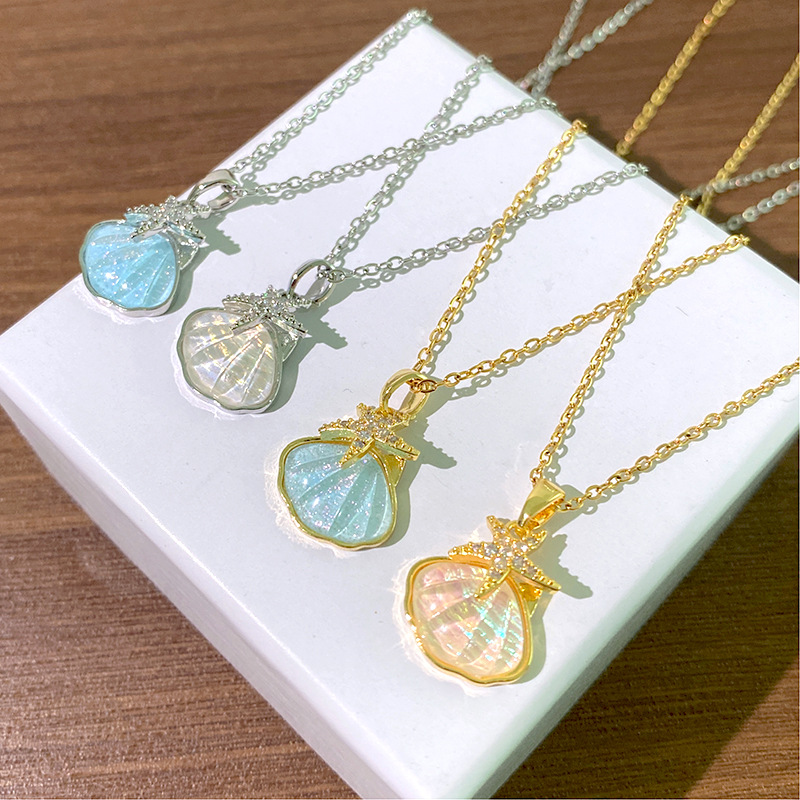 钛钢项链彩色贝壳海星吊坠真金电镀镶嵌锆石锁骨链气质冷淡风饰品