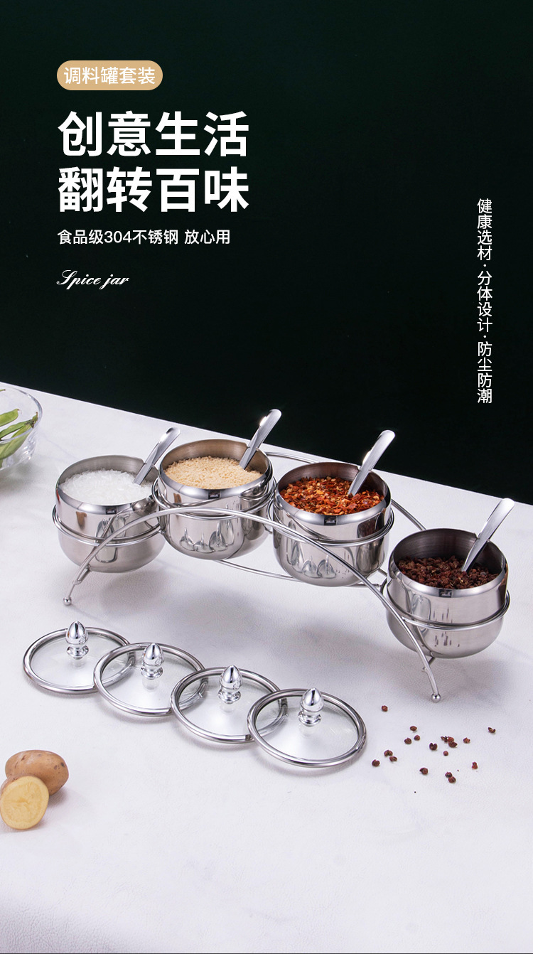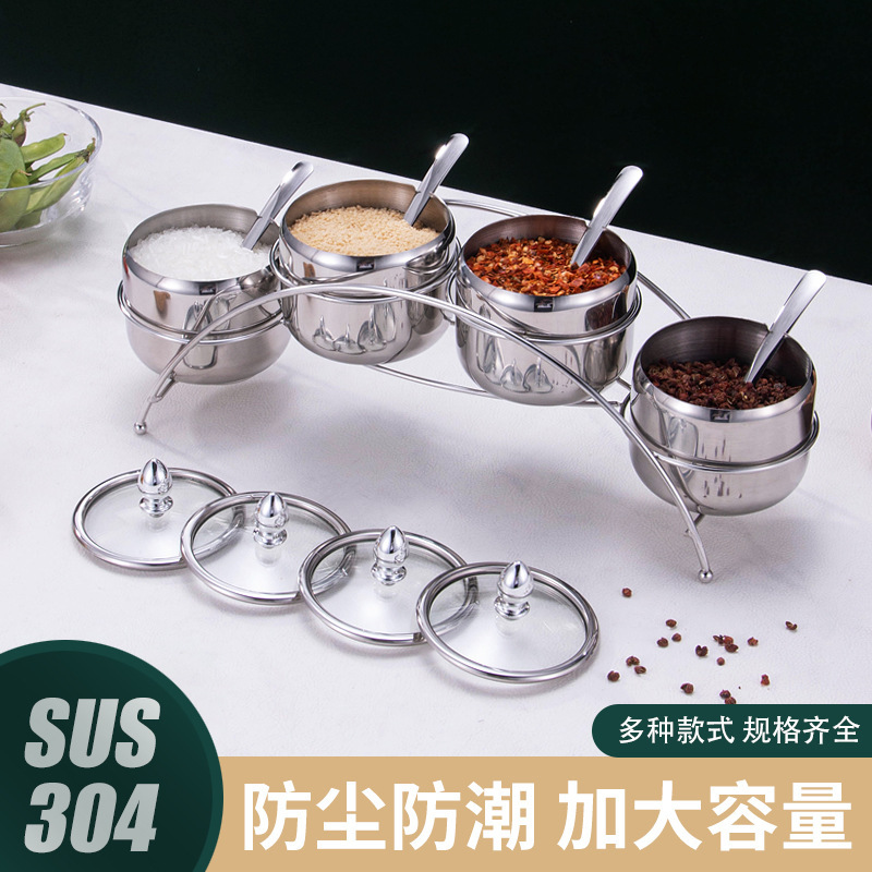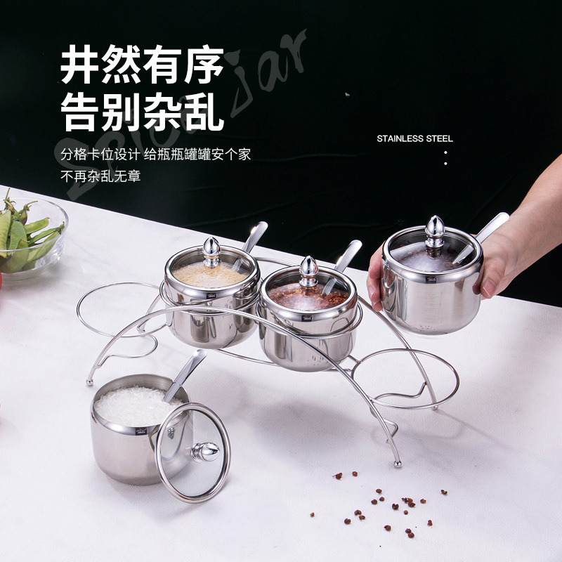 304 ステンレス鋼の調味料瓶調味料ボックススプーンガラス蓋付き調味料保存チリ瓶調味料瓶塩瓶味カップ