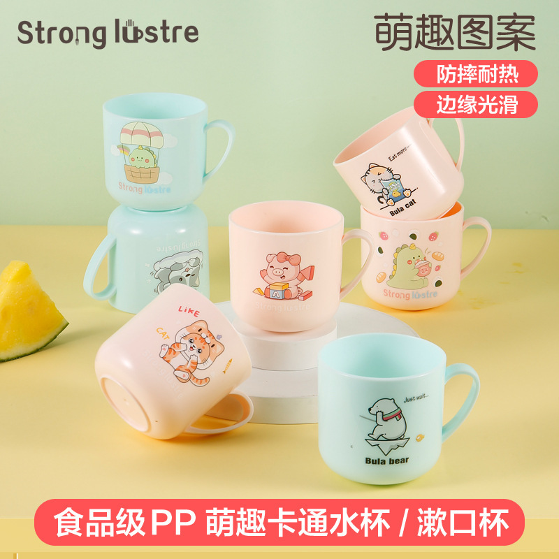 漫画かわいい子供用食品グレードの耐熱マウスウォッシュカップ、歯磨きカップ、ハンドル付き学生ミルクカップ、ウォーターカップ、スナックカップ