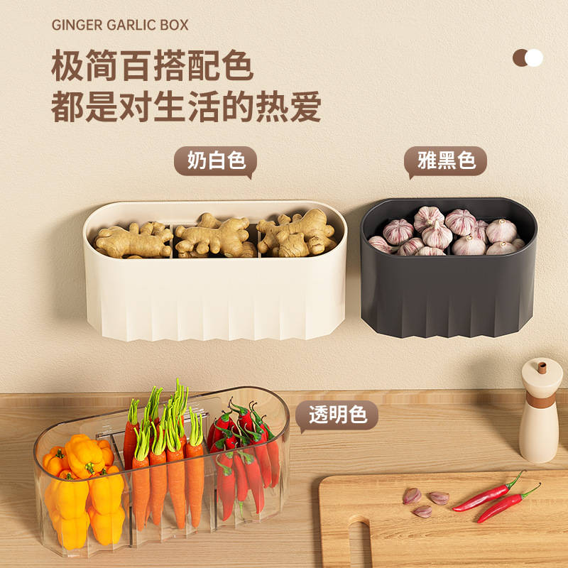 代を越えて穴を開けない野菜かごの壁に台所の壁を掛けて物を置く棚の台所の物棚のネギとニンニクの調味料を置きます。
